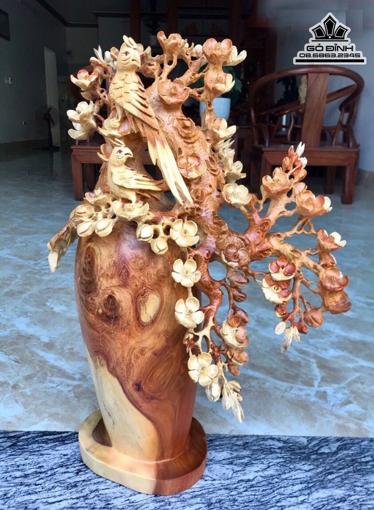 Bình Hoa Mai Điểu Gỗ Hương