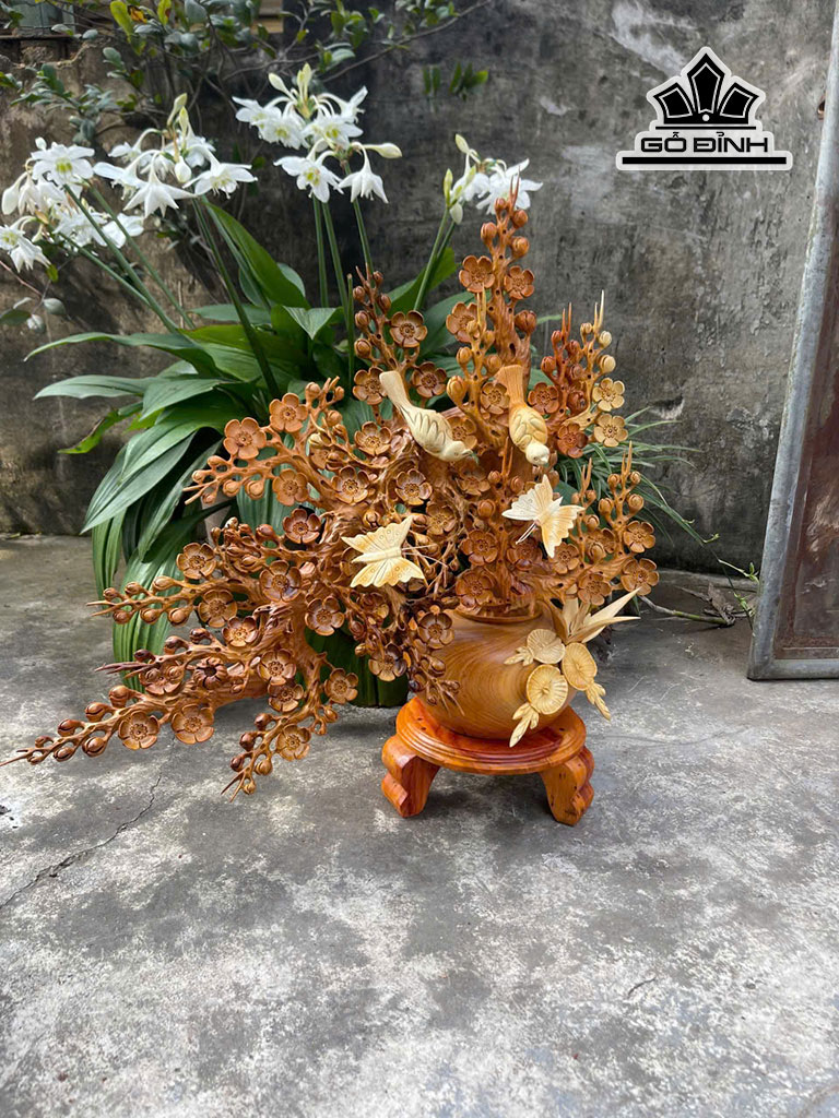 Bình Hoa Mai Gỗ Hương Cao 70 Ngang 68 Sâu 23 (cm)