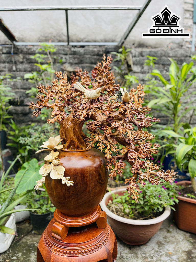 Bình Hoa Mai Gỗ Hương Cao 86 Ngang 66 Sâu 50 (cm)