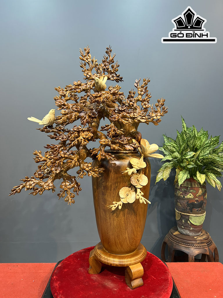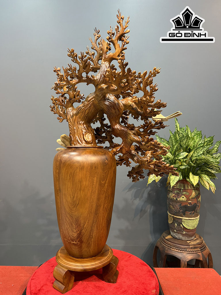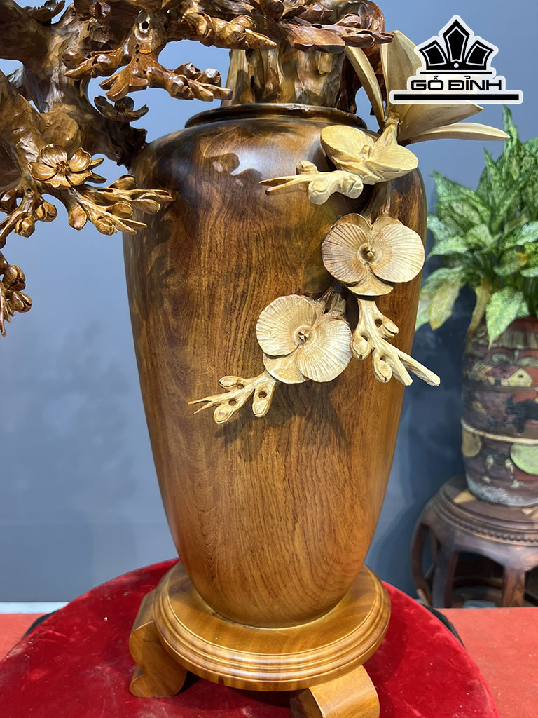 Bình Hoa Mai Gỗ Hương Cao 99 Ngang 55 Sâu 42 Đường Kính Bình 25 (cm)