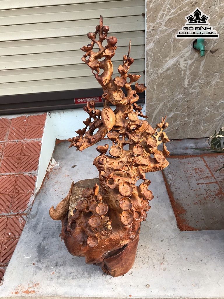 Bình Hoa Mai Gỗ Hương Việt Cao 73 Ngang 33 Sâu 30 (cm)