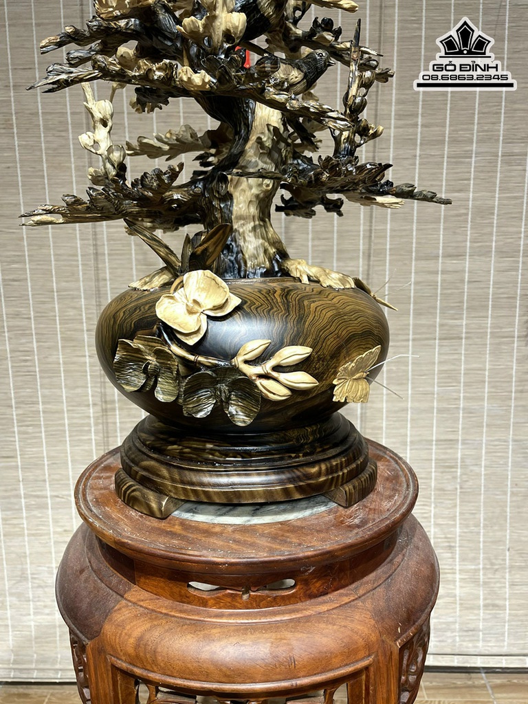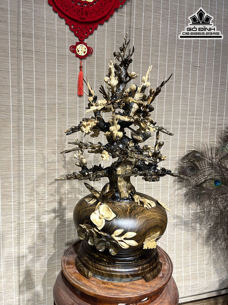 Bình Phú Quý Hoa Mai Gỗ Mun Hoa