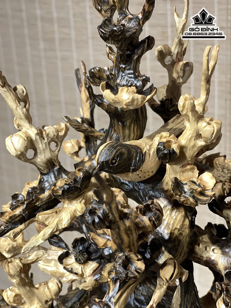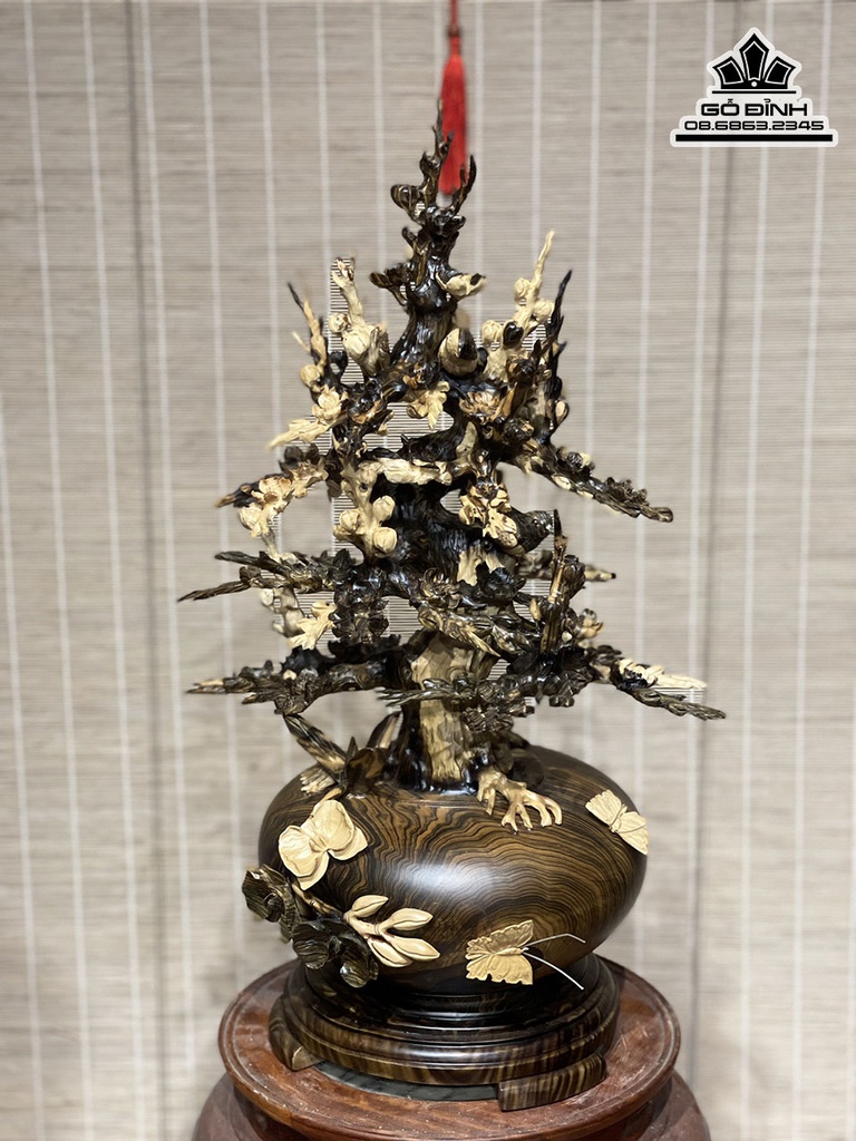 Bình Hoa Mai Gỗ Mun Hoa Cao 61 Rộng 36 Sâu 28 (cm)