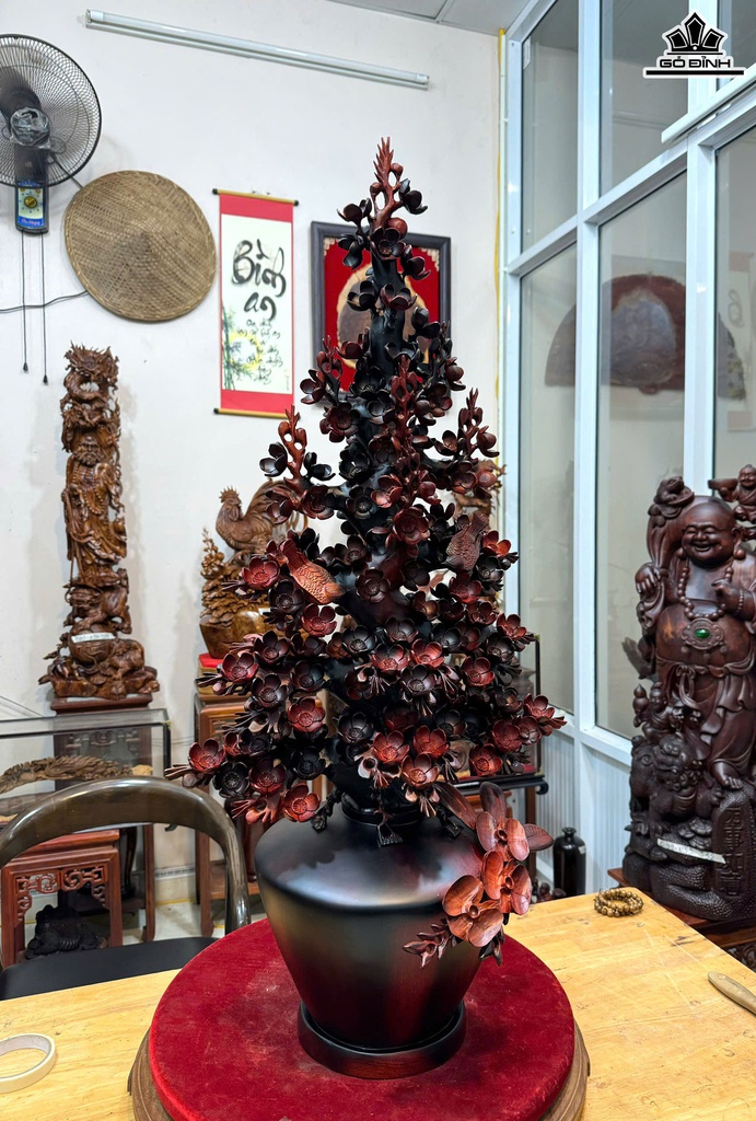 Bình Hoa Mai Gỗ Trắc Cao 100 Ngang 48 Sâu 32 (cm)