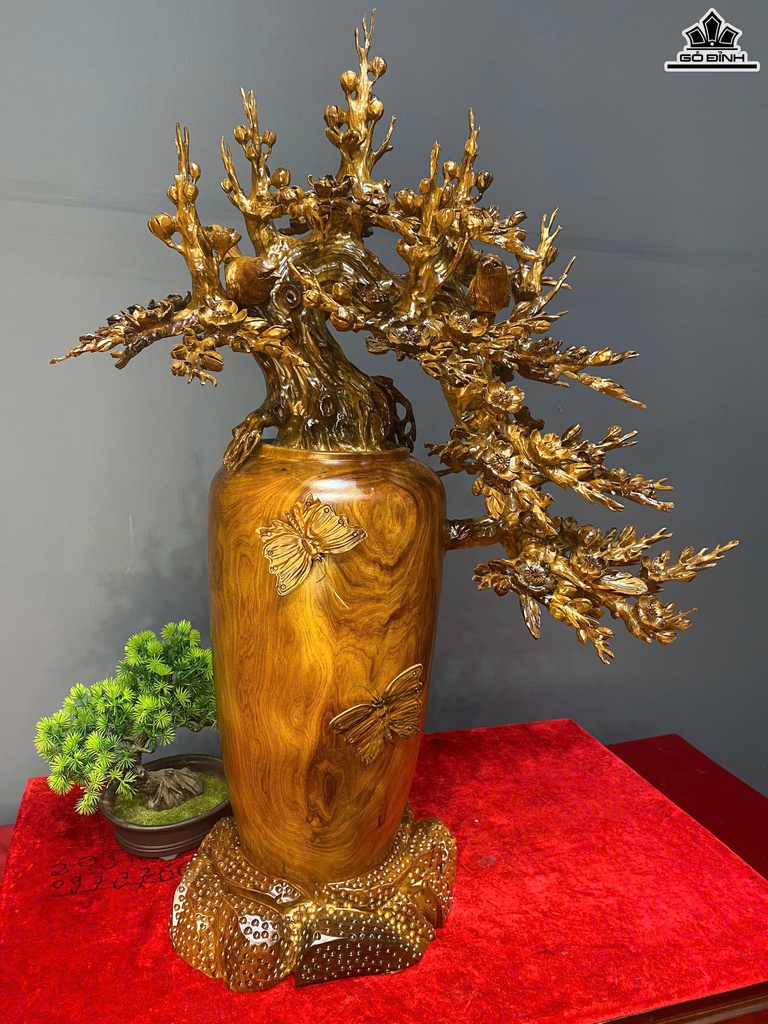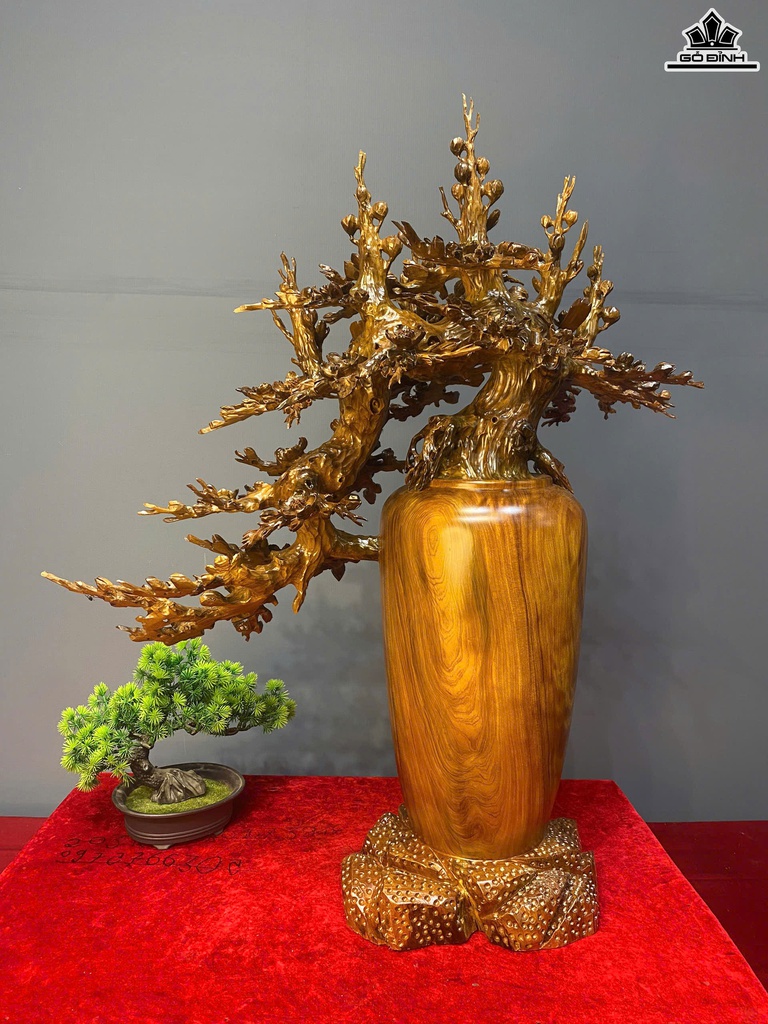 Bình Hoa Mai Phú Quý Gỗ Bách Xanh Cao 79 Ngang 65 Sâu 30 (cm)