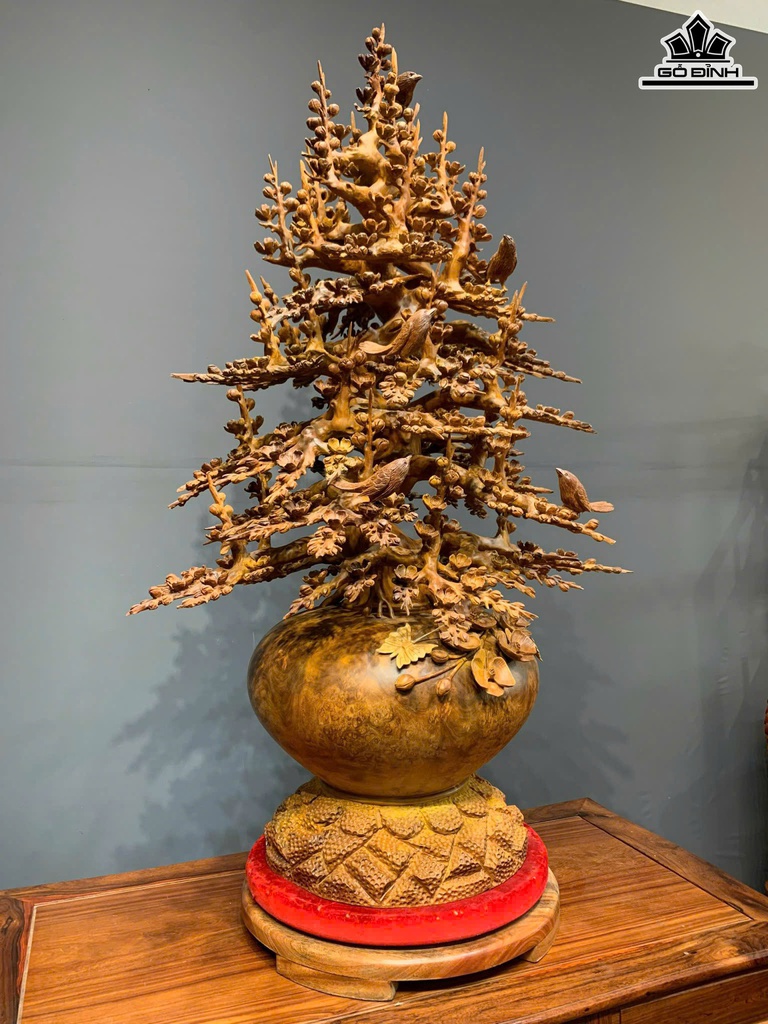 Bình Hoa Mai Phú Quý Gỗ Nu Hương Cao 139 Ngang 75 Sâu 73 (cm) - Đường Kính Bình 73 (cm)