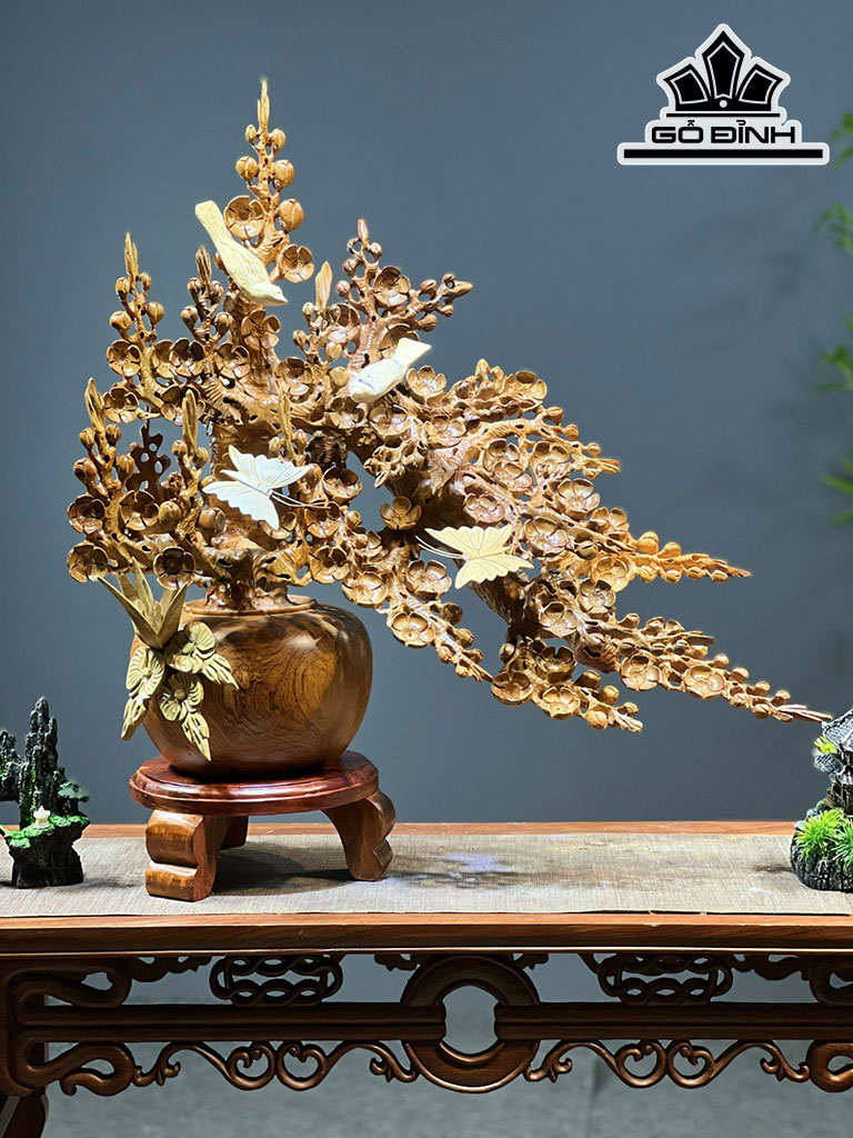 Bình Hoa Mai Thác Đổ Gỗ Hương