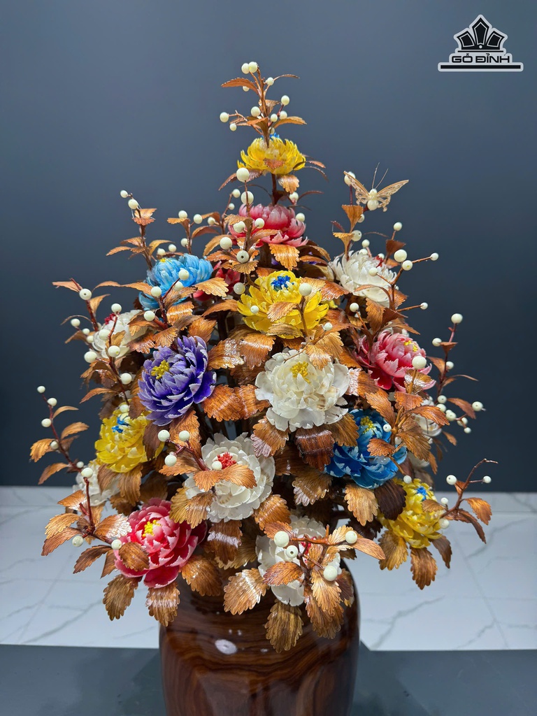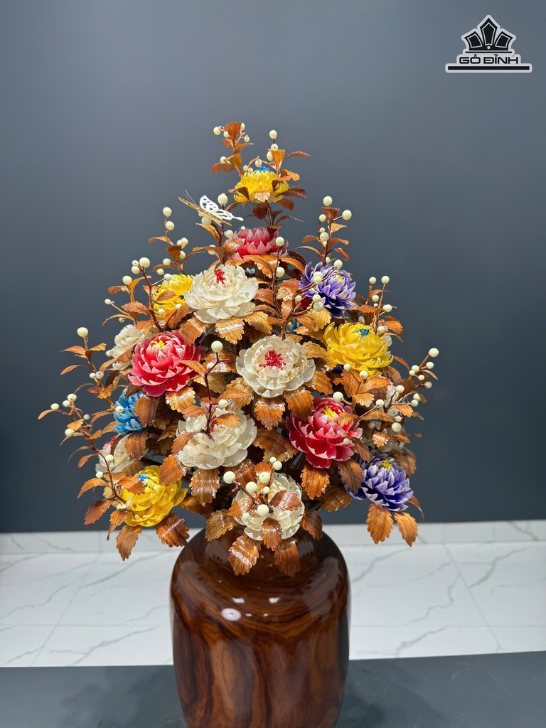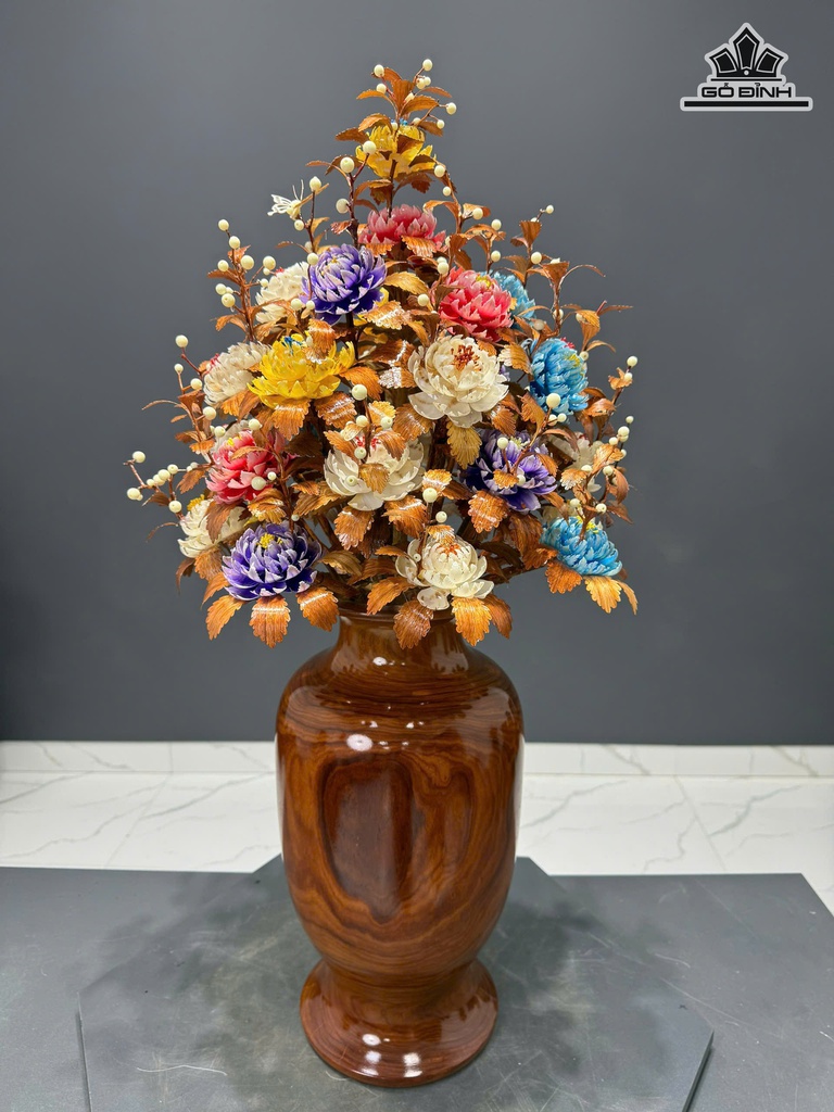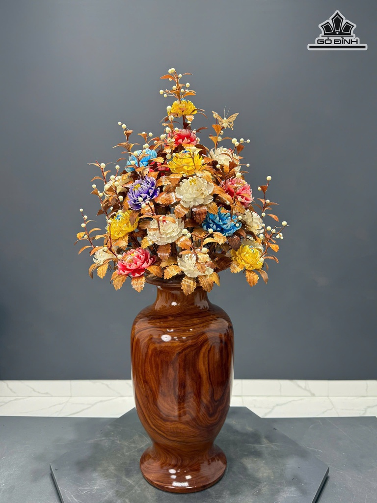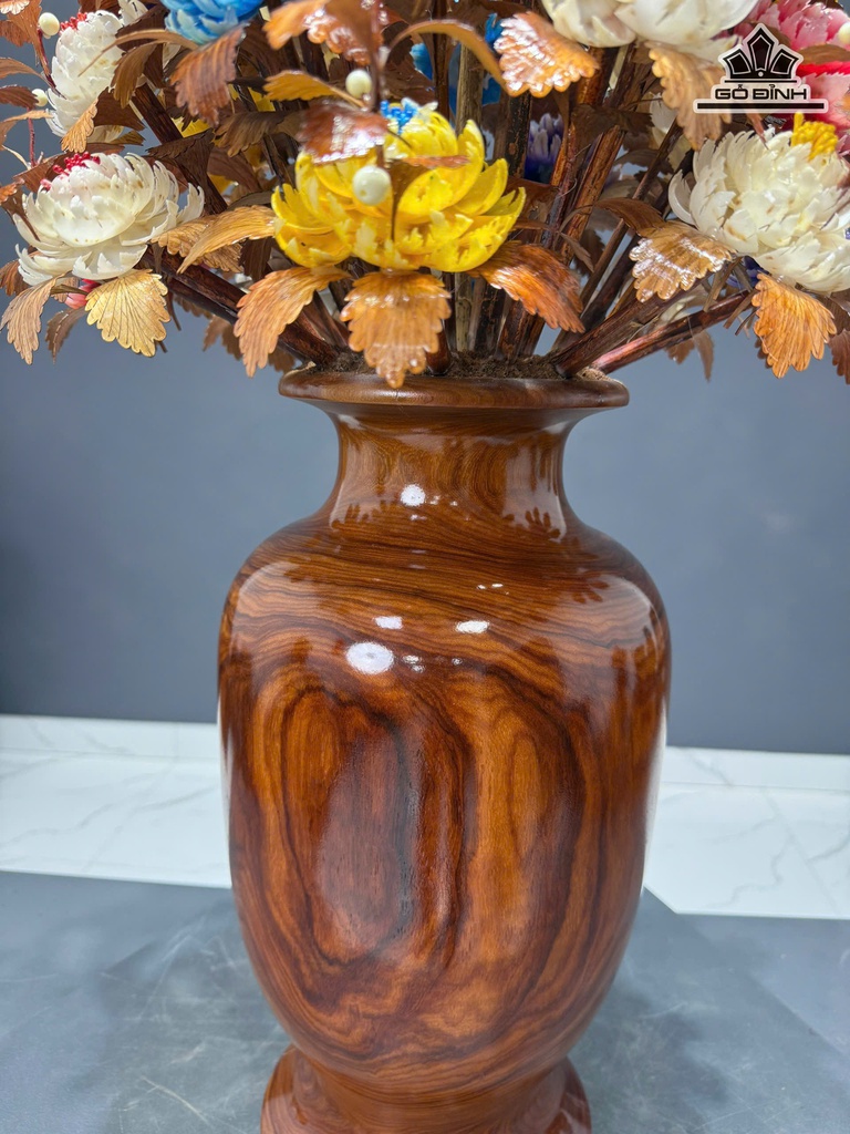Bình Hoa Ngũ Sắc - Bình Gỗ Cẩm - Lá Gỗ Sưa Cao 90 Ngang 47 Sâu 47 (cm)