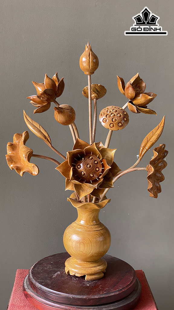 Bình Hoa Sen 11 Cành Gỗ Ngọc Am Cao 75 Ngang 50 (cm)