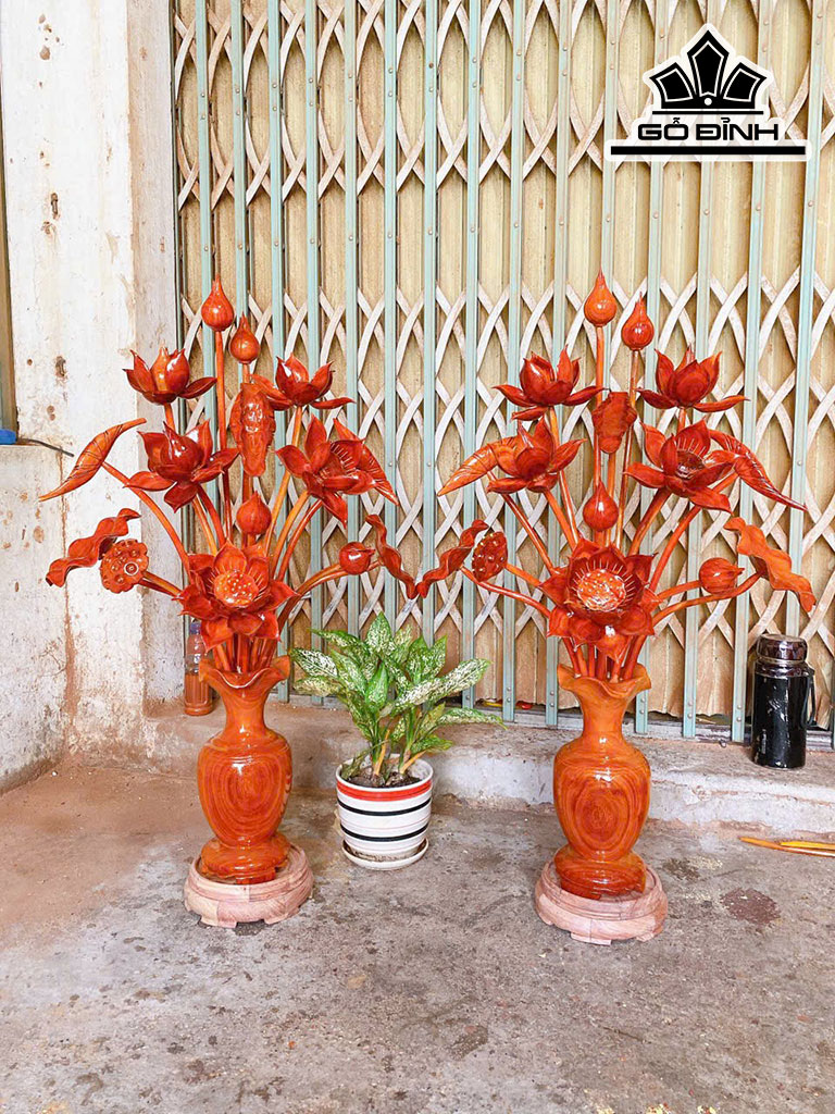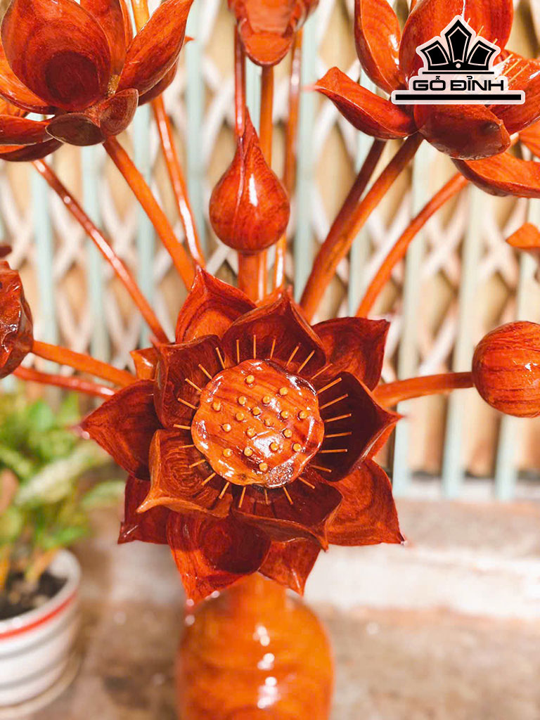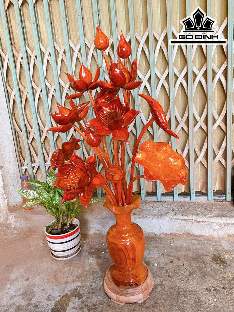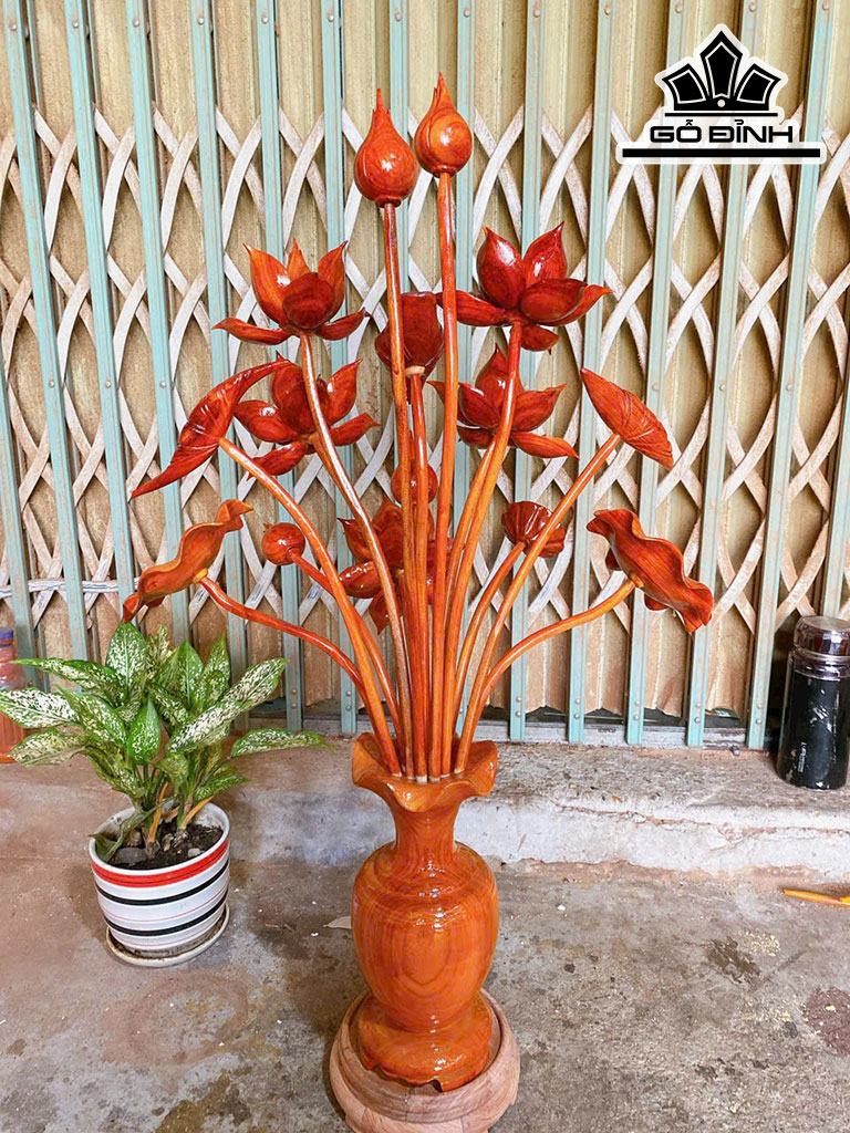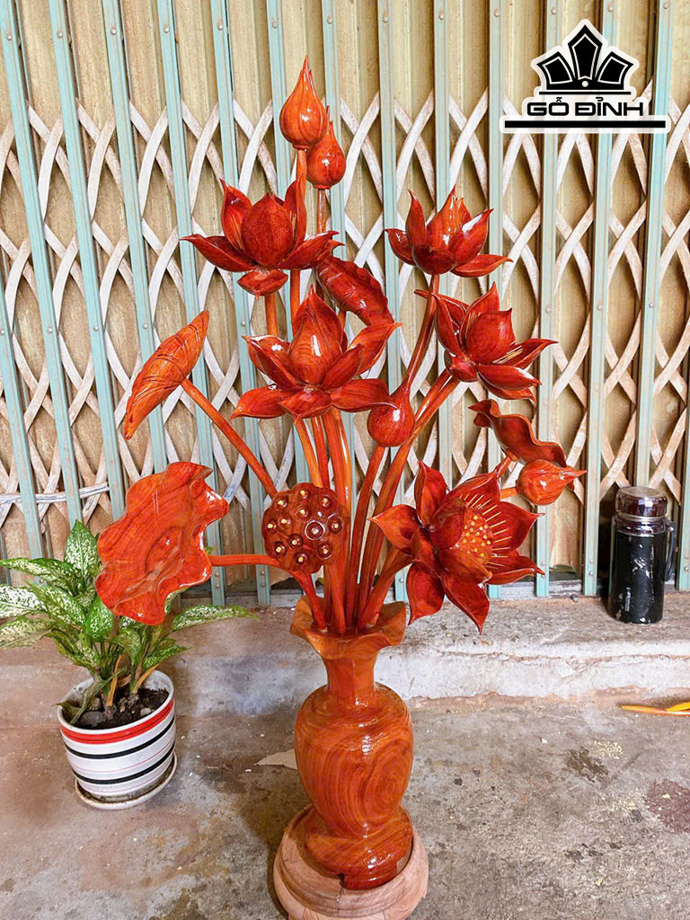 Bình Hoa Sen 15 Bông Gỗ Hương Cao 88 Ngang 52 Sâu 35 (cm)