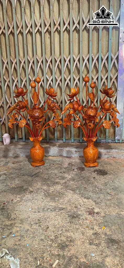 Bình Hoa Sen 15 Bông Gỗ Hương Cao 88 Ngang 55 Sâu 40 (cm)
