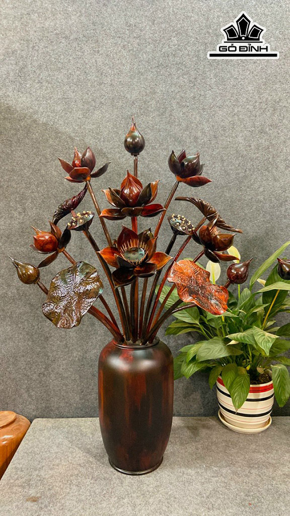 Bình Hoa Sen 15 Bông Gỗ Trắc Cao 86 Ngang 55 Sâu 30 (cm)