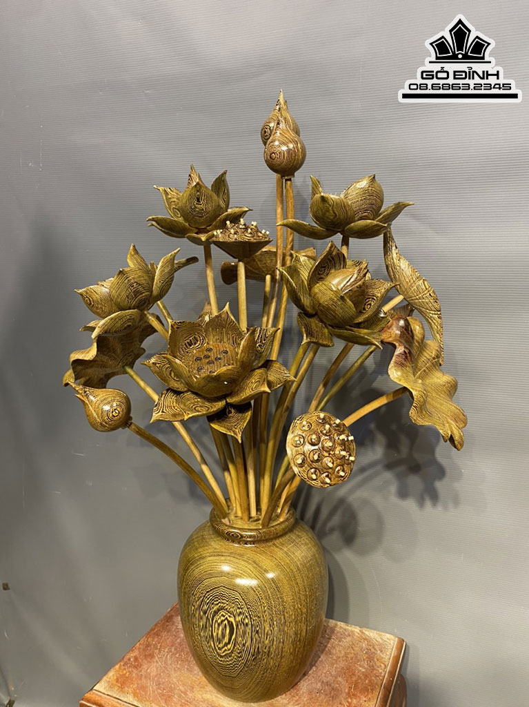 Bình Hoa Sen 17 Bông Gỗ Mun