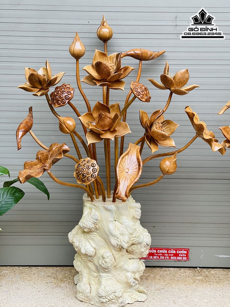 Bình Hoa Sen 19 Cành Gỗ Ngọc Am Bình Cà Phê Cao 90 Ngang 65 Sâu 25 (cm)