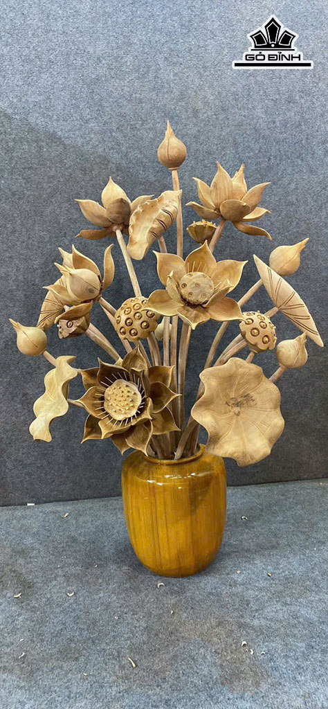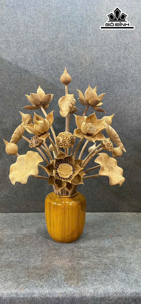 Bình Hoa Sen 21 Bông Gỗ Ngọc Am