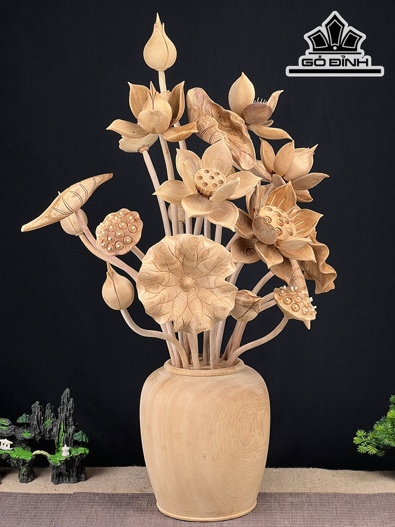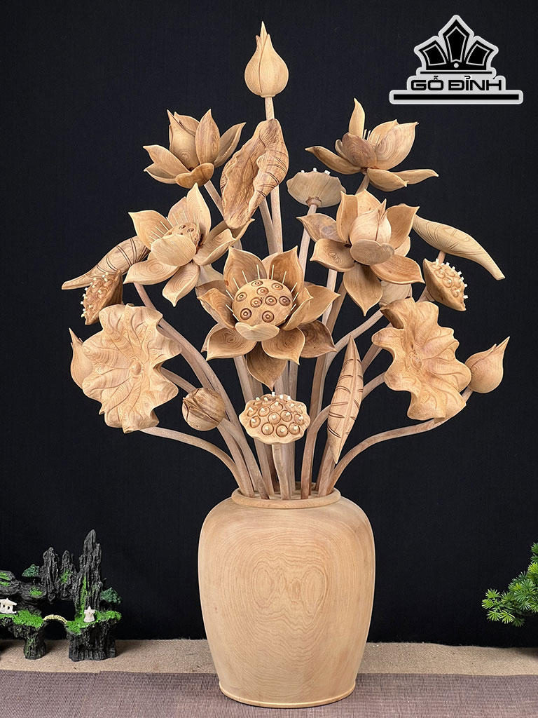 Bình Hoa Sen 21 Cành Gỗ Ngọc Am Cao 83 Ngang 52 Sâu 45 (cm)