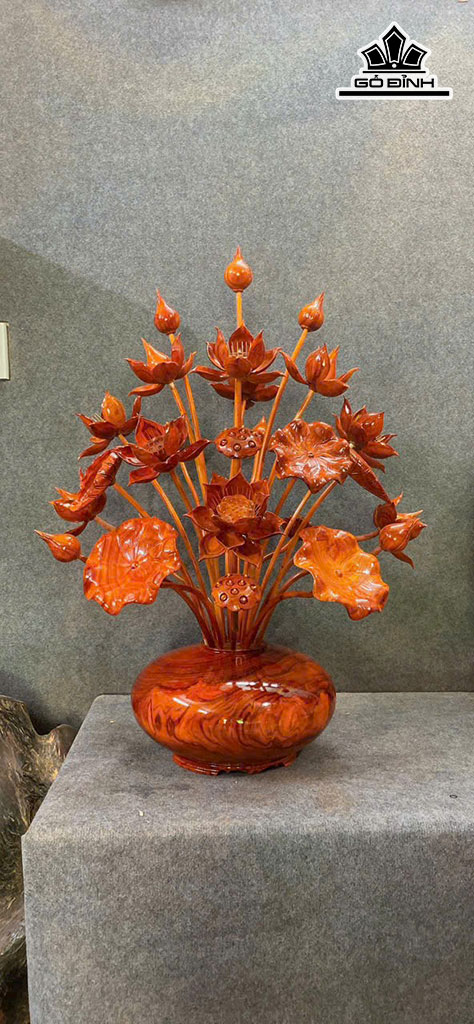 Bình Hoa Sen 27 Bông Gỗ Hương Cao 105 Ngang 65 Sâu 50 (cm)