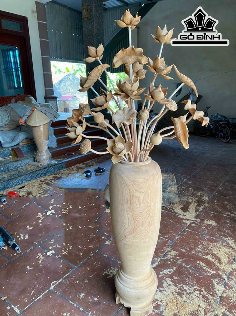 Bình Hoa Sen 35 Bông Gỗ Ngọc Am Cao 176 Xòa Tán 86 (cm)