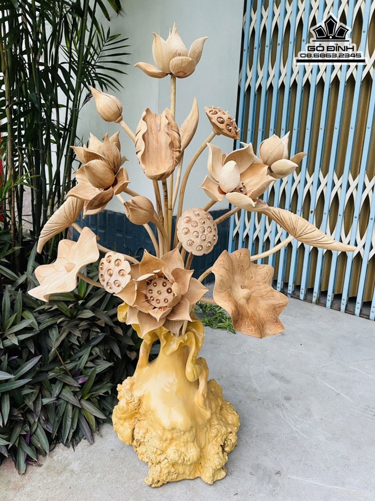 Bình Hoa Sen Gỗ Ngọc Am Cao 102 Ngang 60 Sâu 46 (cm)