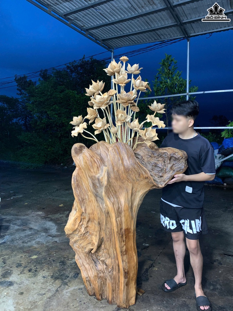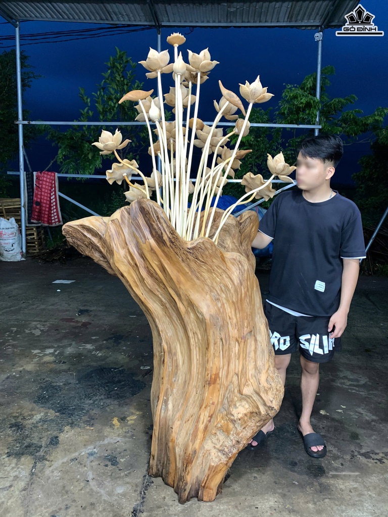 Bình Hoa Sen Gỗ Ngọc Am Cao 200 Ngang 100 Sâu 40 (cm)