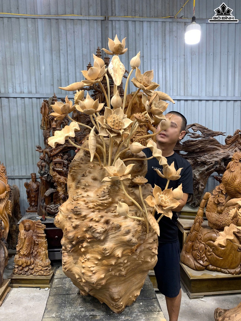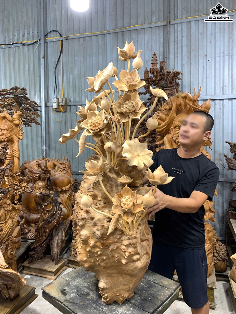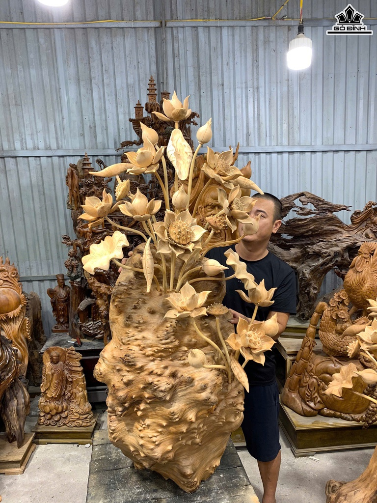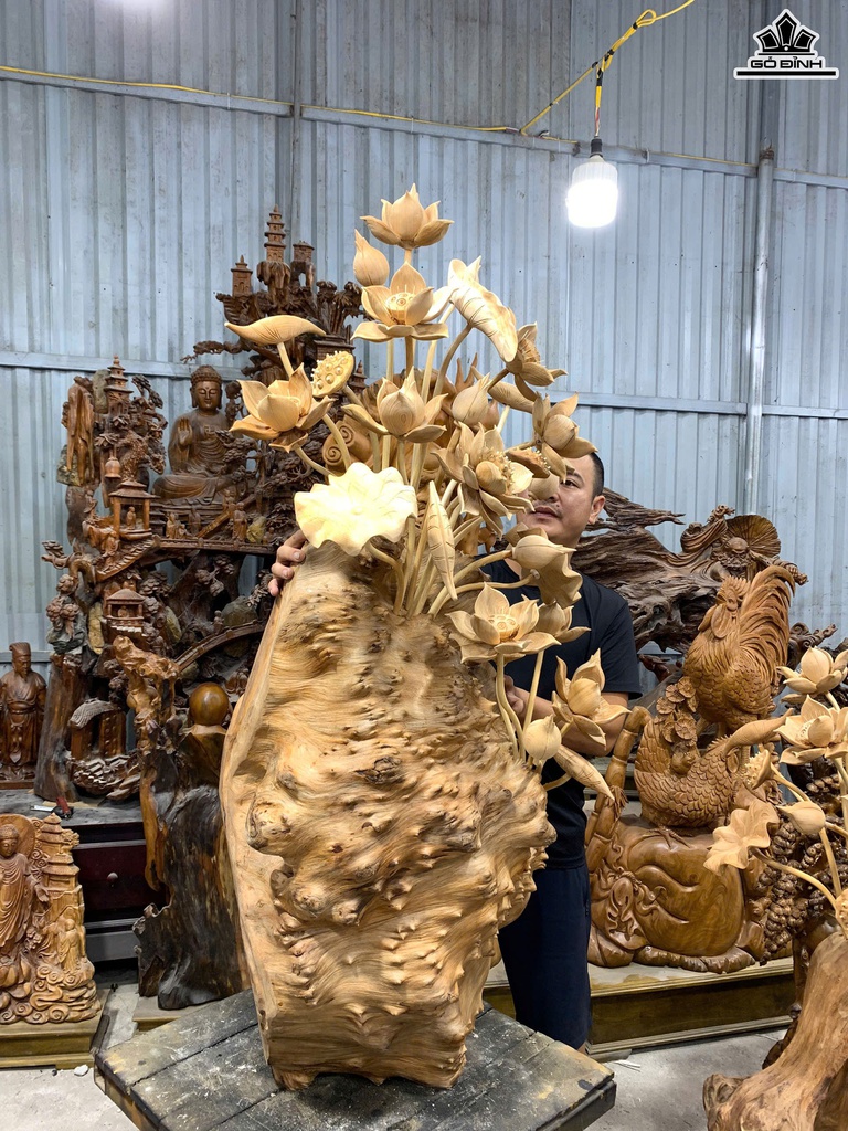 Bình Hoa Sen Gỗ Nu Ngọc Am Cao 140 Ngang 65 Sâu 45 (cm)