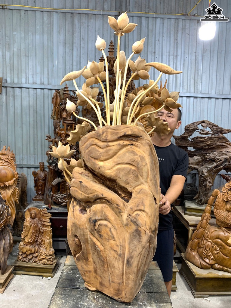 Bình Hoa Sen Gỗ Nu Ngọc Am Cao 140 Ngang 65 Sâu 45 (cm)