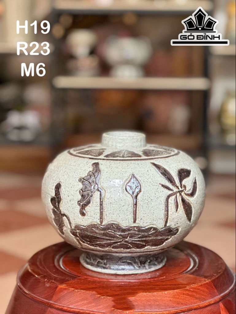 Bình Hoa Vẽ Hoa Sen Gốm Bát Tràng Cao 19 Miệng 6 (cm)