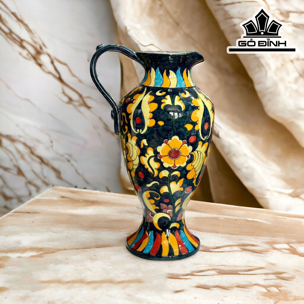 Bình Hoa Vẽ Kĩ Men Lam Tây Gốm Bát Tràng Cao 29 Miệng 10 (cm)