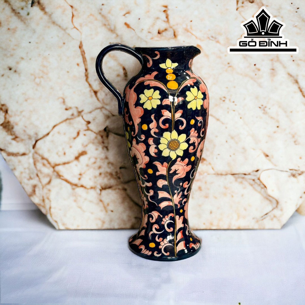 Bình Hoa Vẽ Kĩ Men Lam Tây Gốm Bát Tràng Cao 32 Miệng 11 (cm)