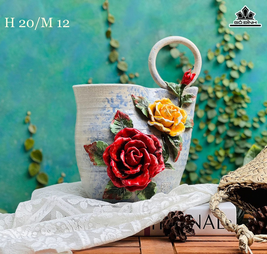 Bình Hoa Vuốt Đắp Nổi Gốm Bát Tràng