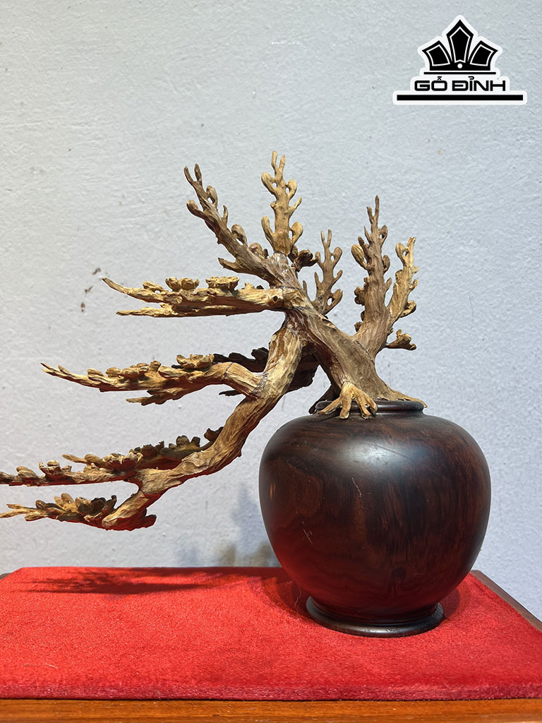 Bình Mai Gỗ Hoàng Đàn Thân Bình Gỗ Trắc Cao 37 Ngang 37 Sâu 22 (cm)