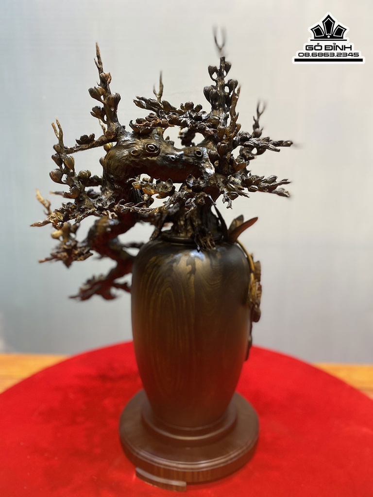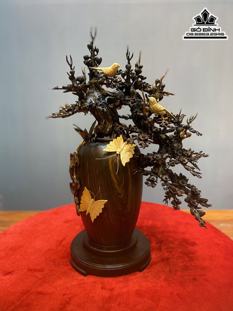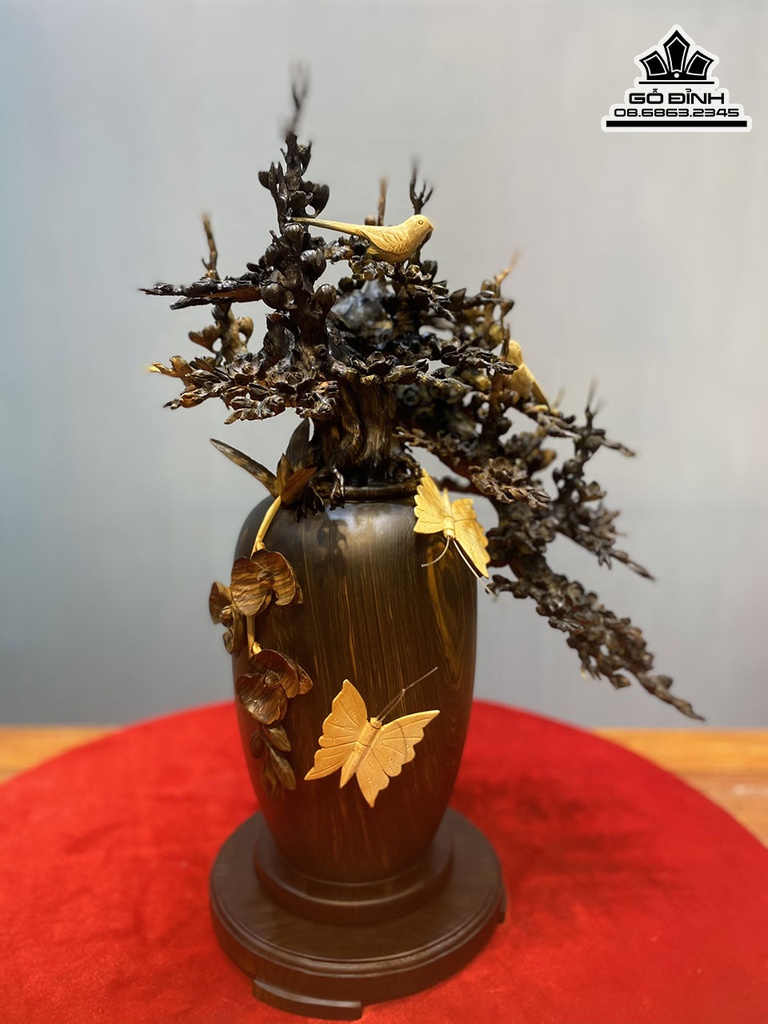 Bình Mai Lan Phú Quý Gỗ Mun Hoa Cao 60 Ngang 40 Sâu 36 (cm)