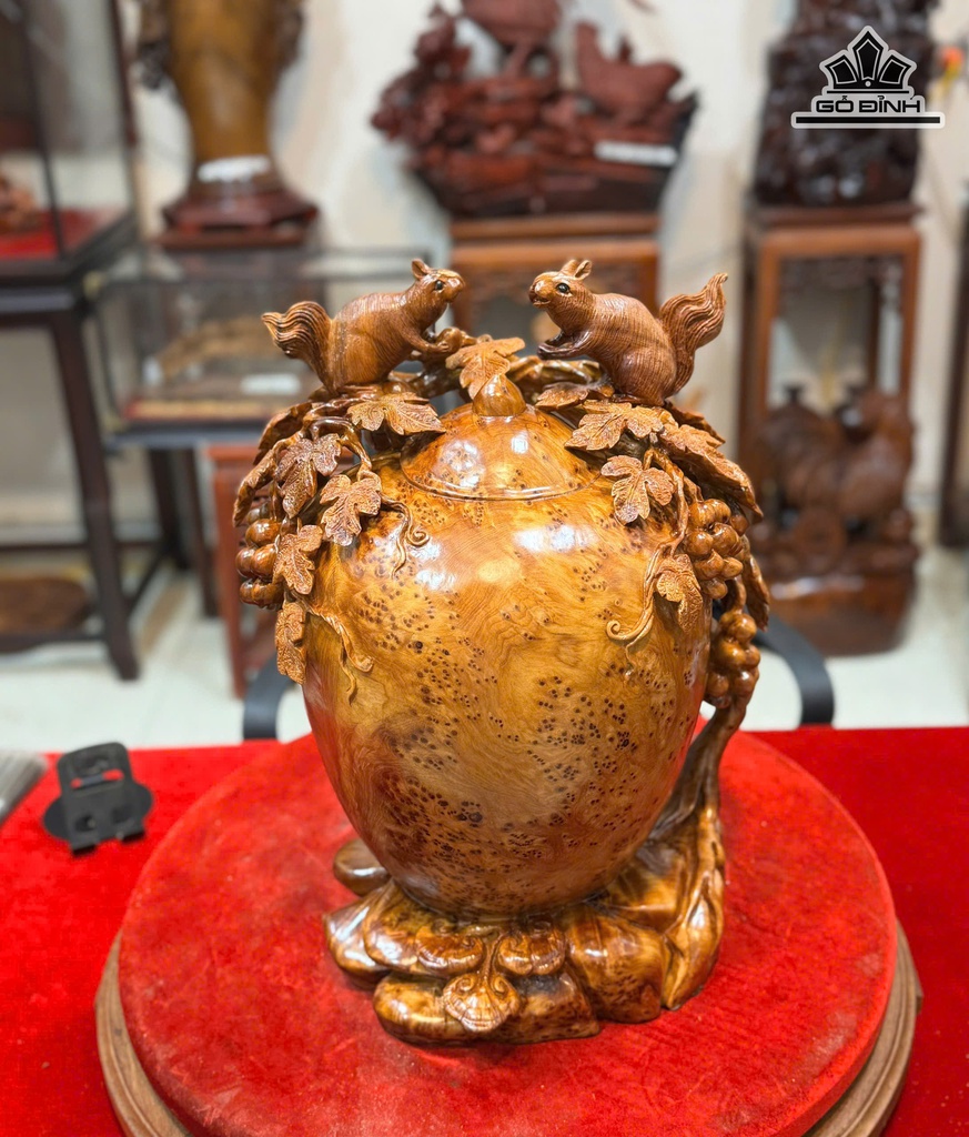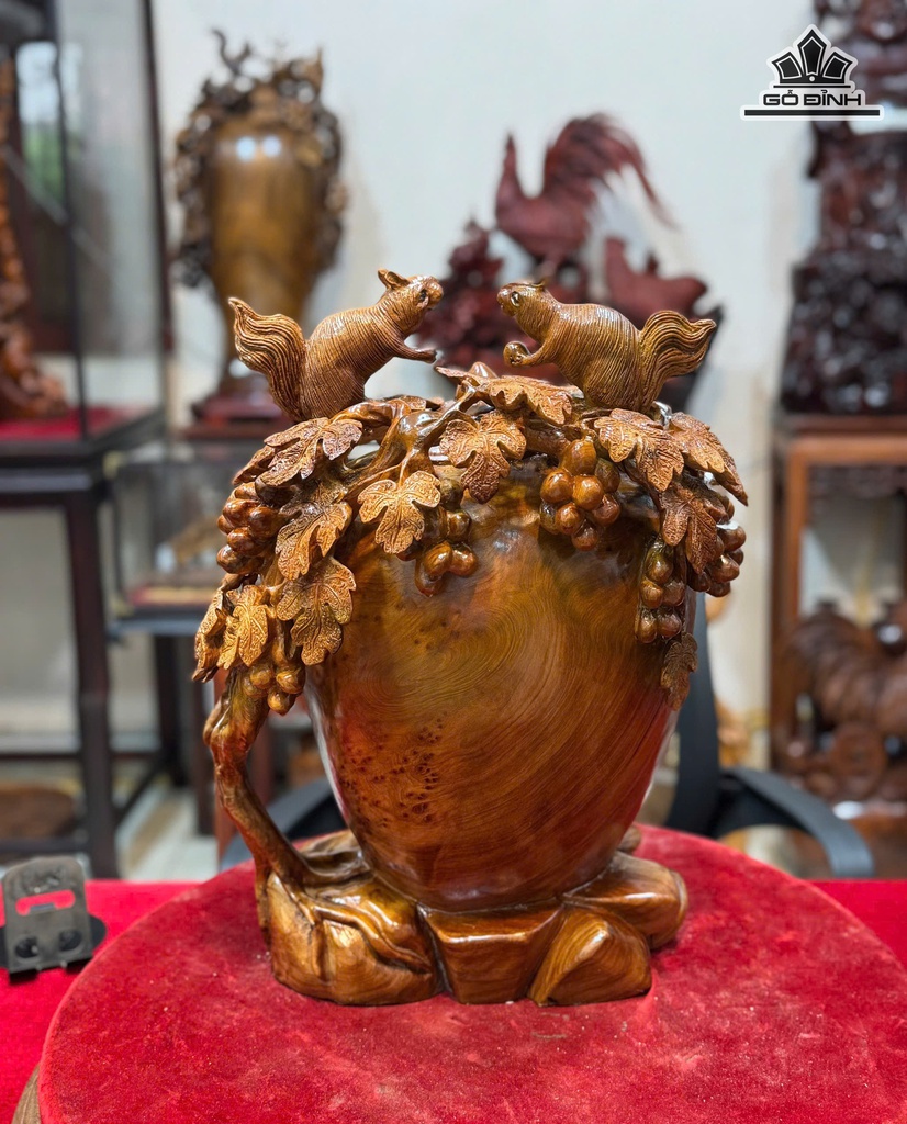 Bình Nho Sóc Gỗ Nu Ngọc Am Cao 43 Ngang 32 Sâu 27 (cm)
