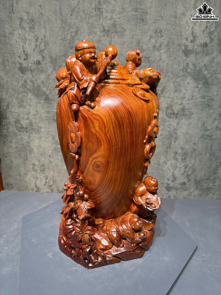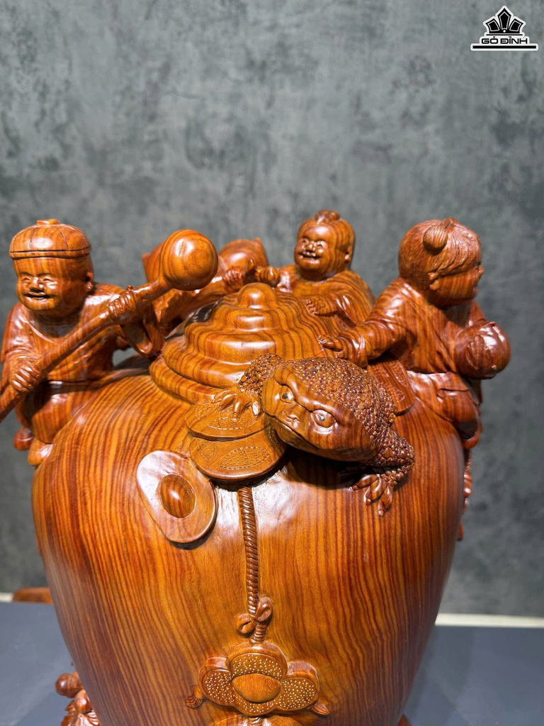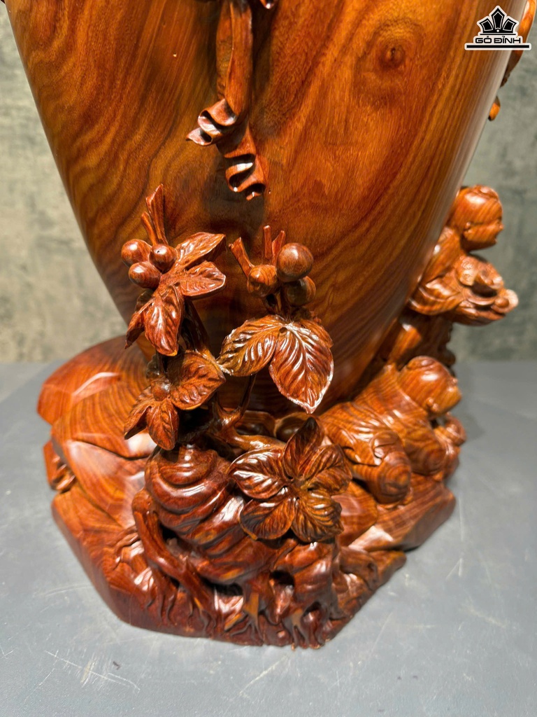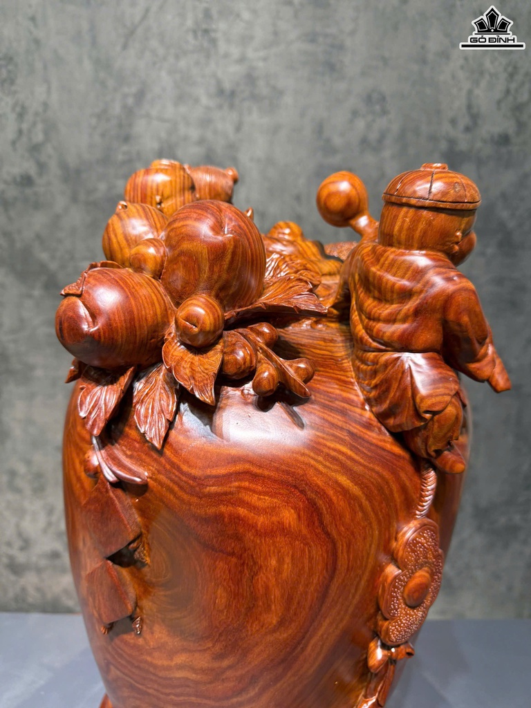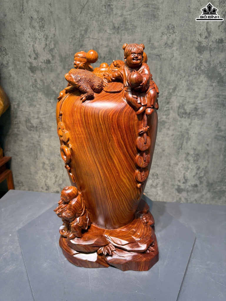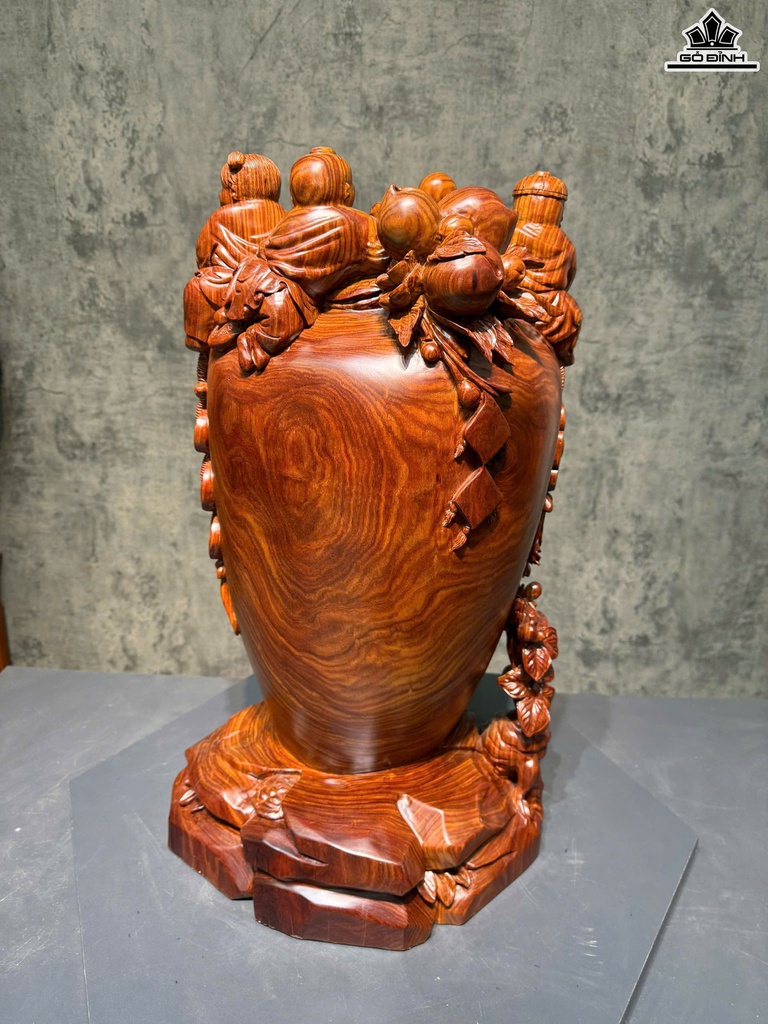 Bình Phú Quý Ngũ Phúc Gỗ Cẩm Cao 66 Ngang 36 Sâu 33 (cm)