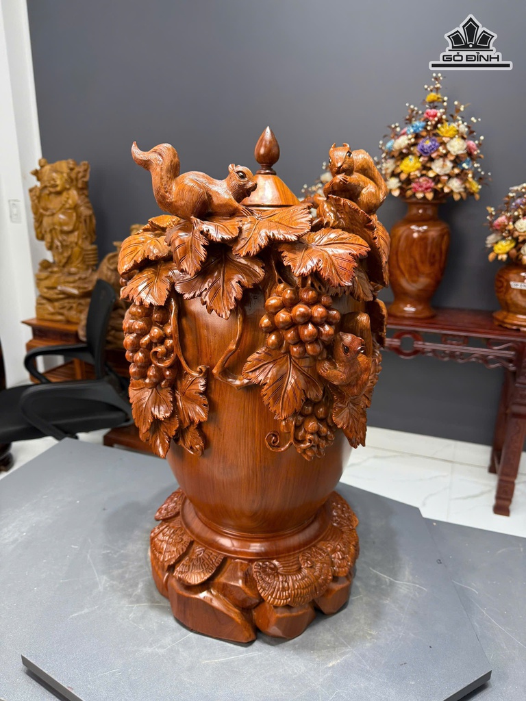 Bình Phú Quý Nho Sóc Gỗ Cẩm Cao 65 Ngang 40 Sâu 35 (cm)
