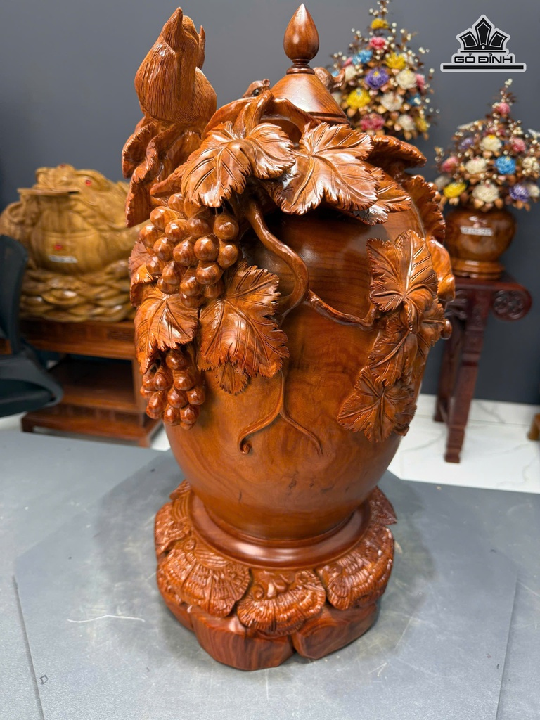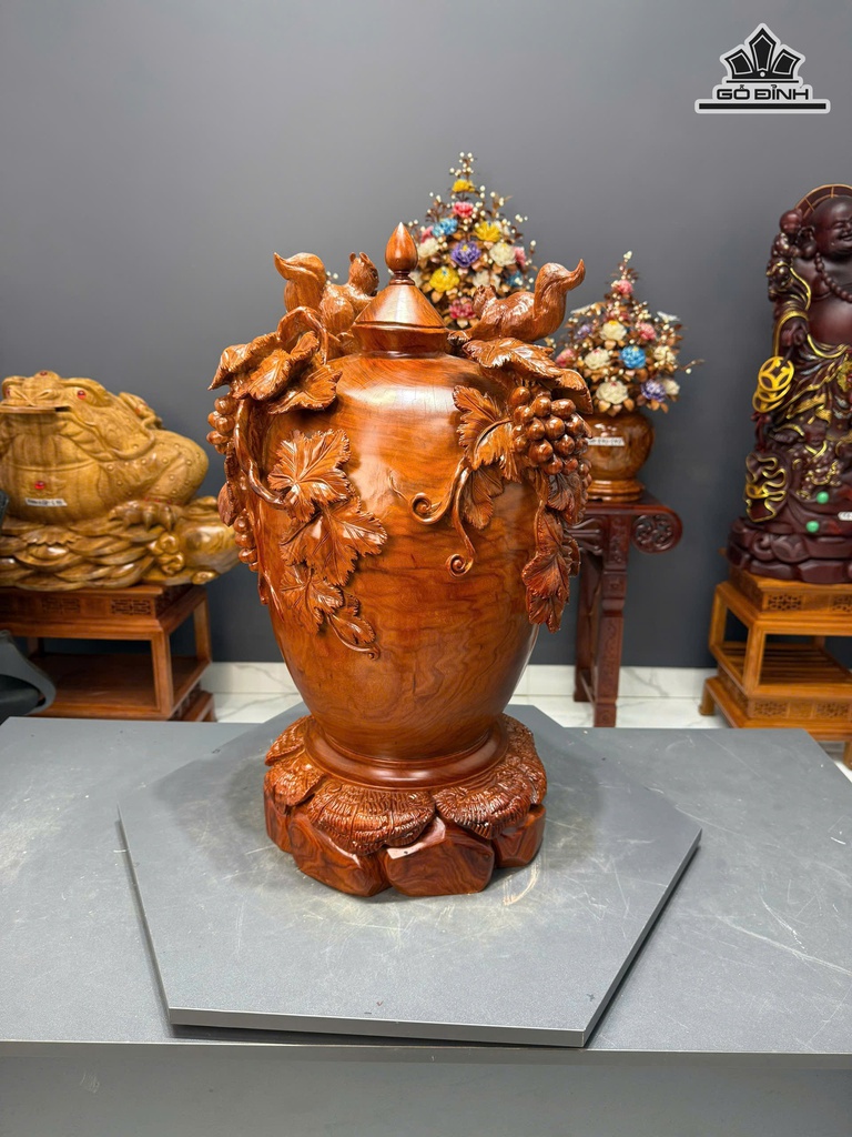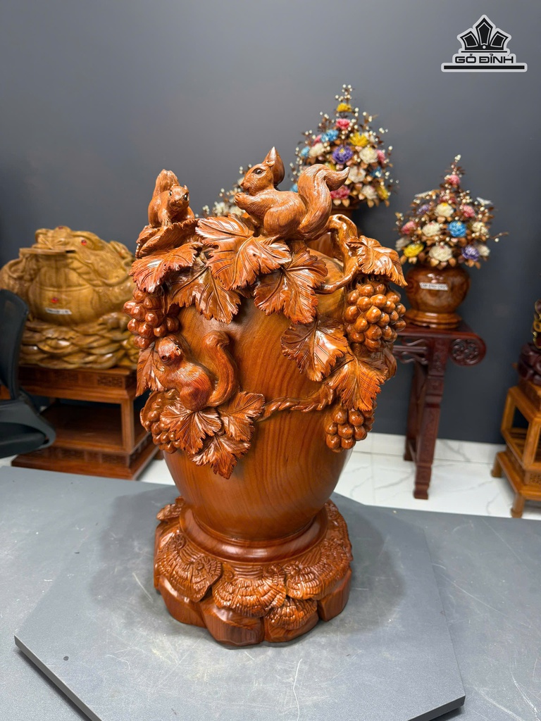 Bình Phú Quý Nho Sóc Gỗ Cẩm Cao 65 Ngang 40 Sâu 35 (cm)