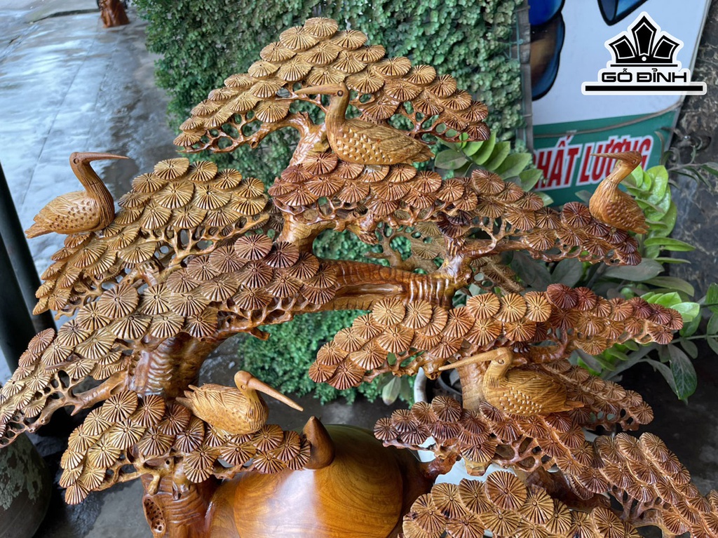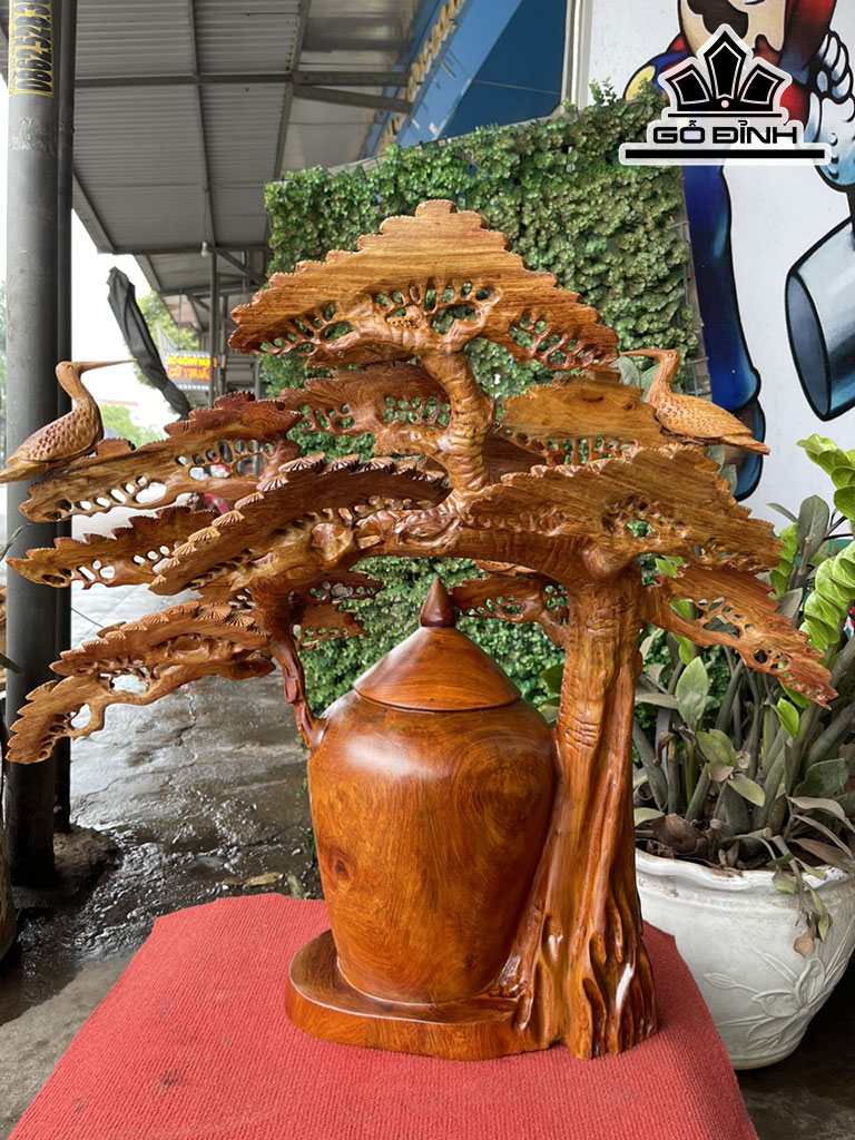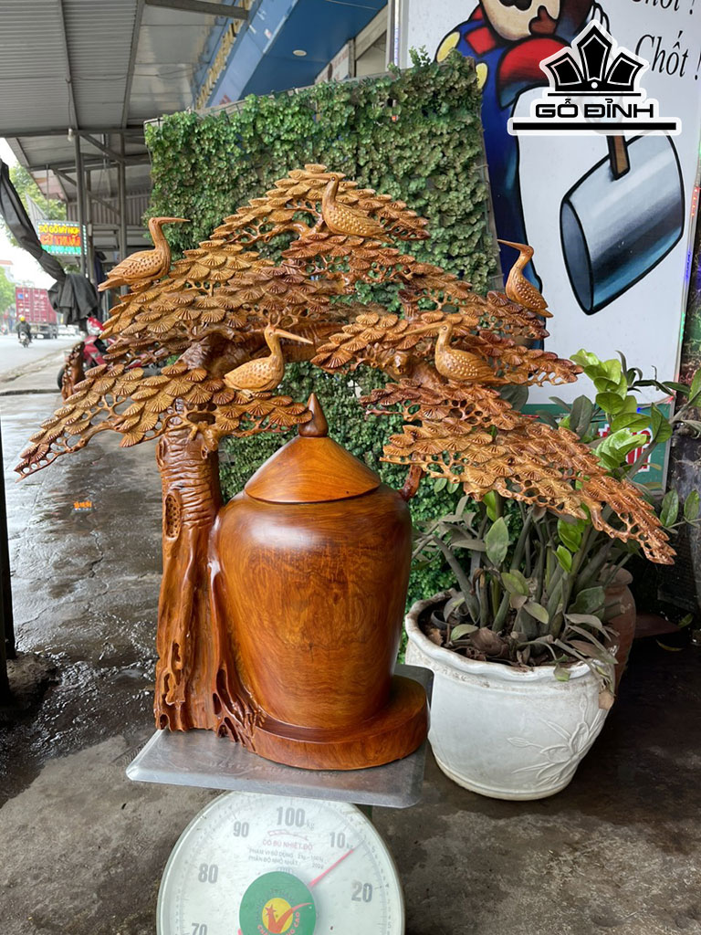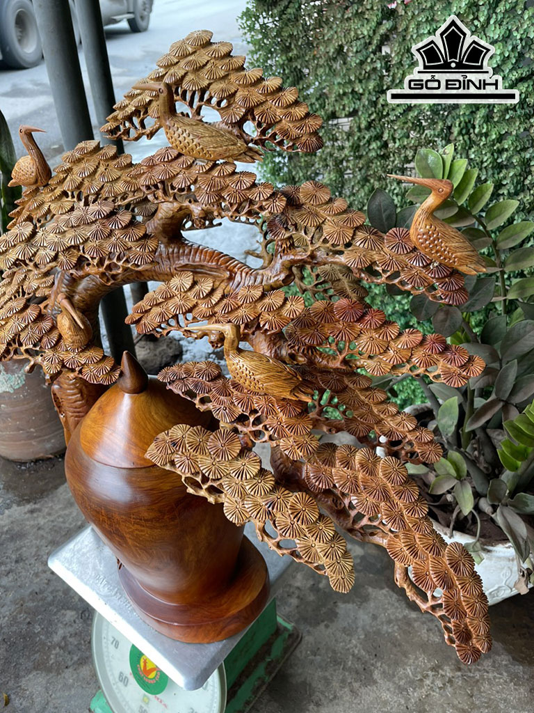 Bình Phú Quý Tùng Hạc Gỗ Hương Cao 70 Ngang 75 Sâu 35 (cm)