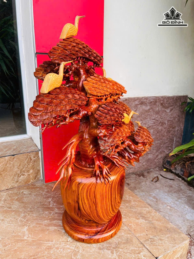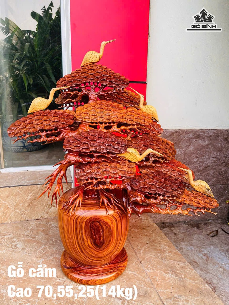Bình Tùng Hạc Gỗ Cẩm Cao 70 Ngang 55 Sâu 25 (cm) - 14kg