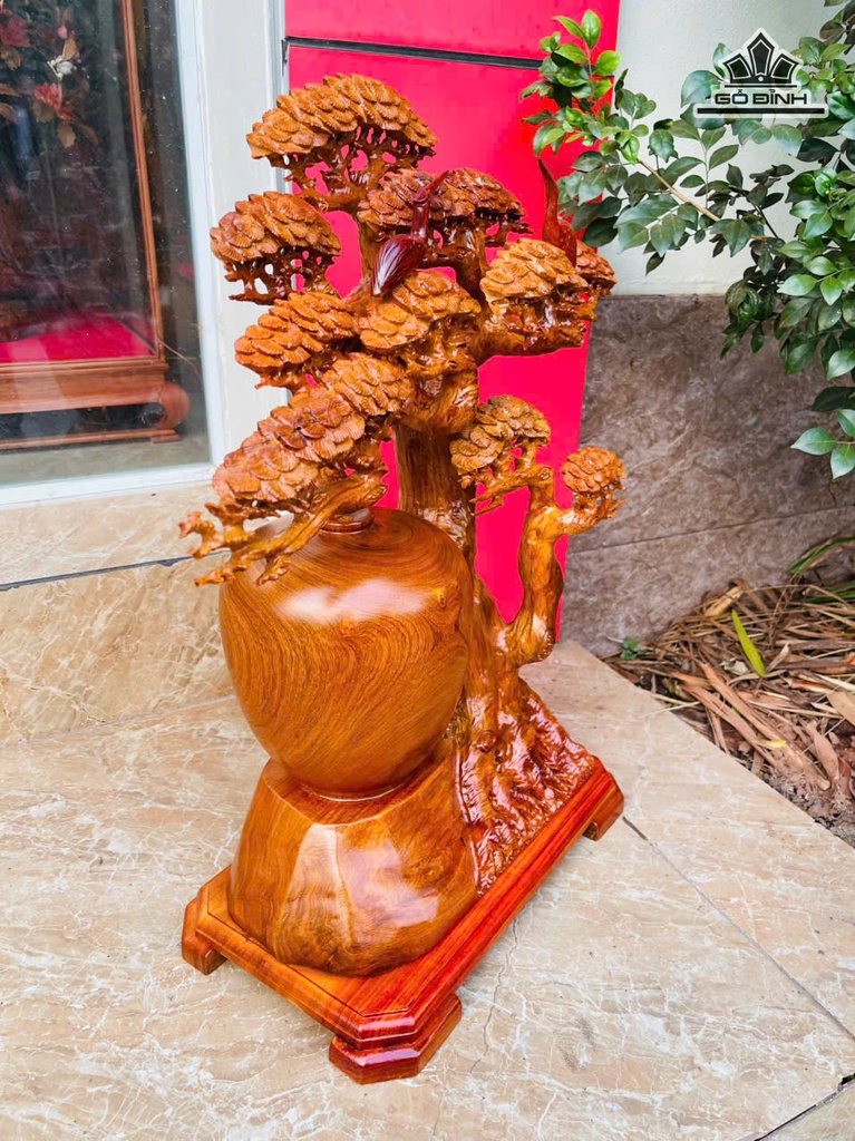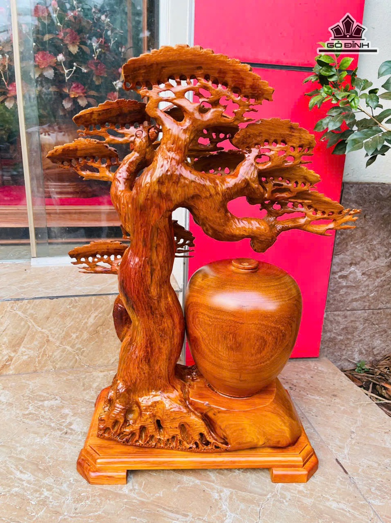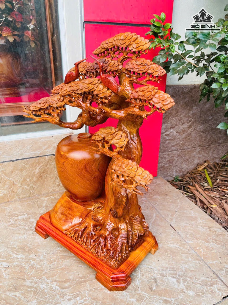 Bình Tùng Hạc Gỗ Hương Cao 57 Ngang 46 Sâu 21 (cm) - 10kg