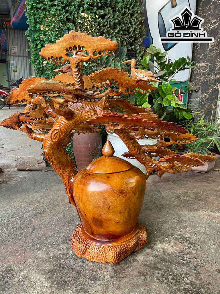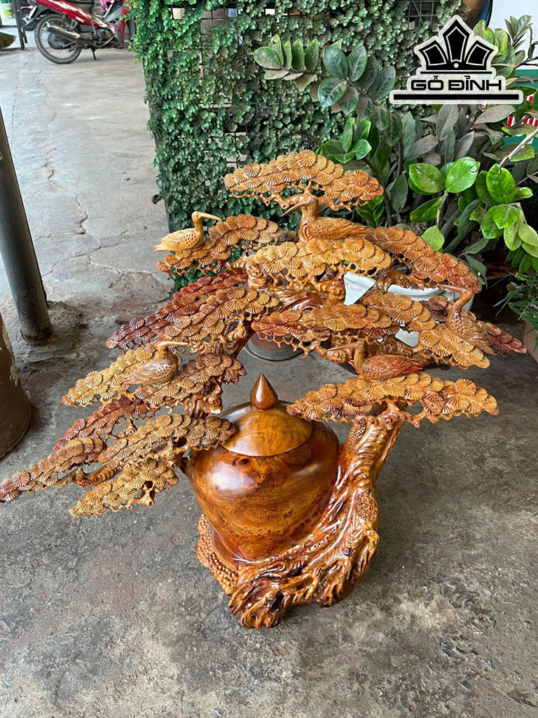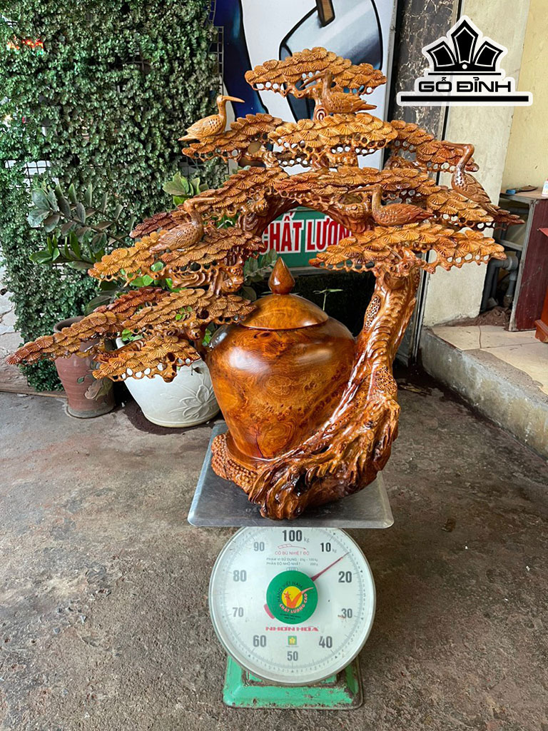Bình Tùng Ngũ Hạc Gỗ Hương Cao 68 Ngang 68 Sâu 38 (cm)