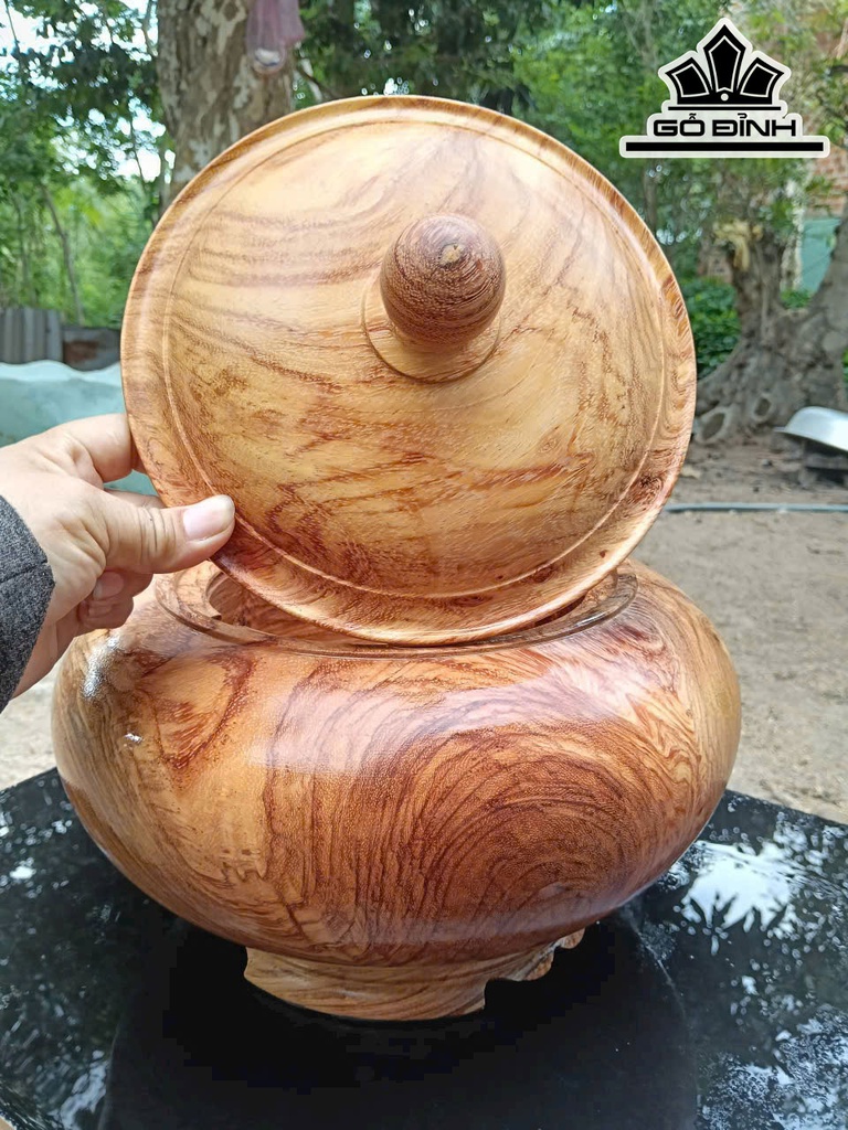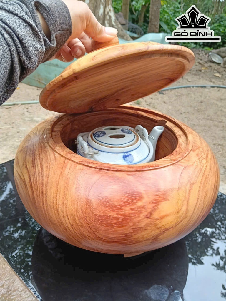 Bình Ủ Trà Gỗ Gõ Đỏ (Cà te) Cao 26 Đường Kính 32 (cm) - 1,2Lít