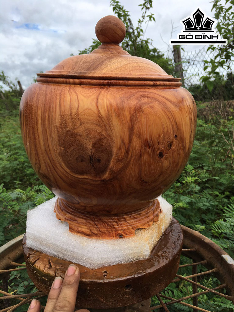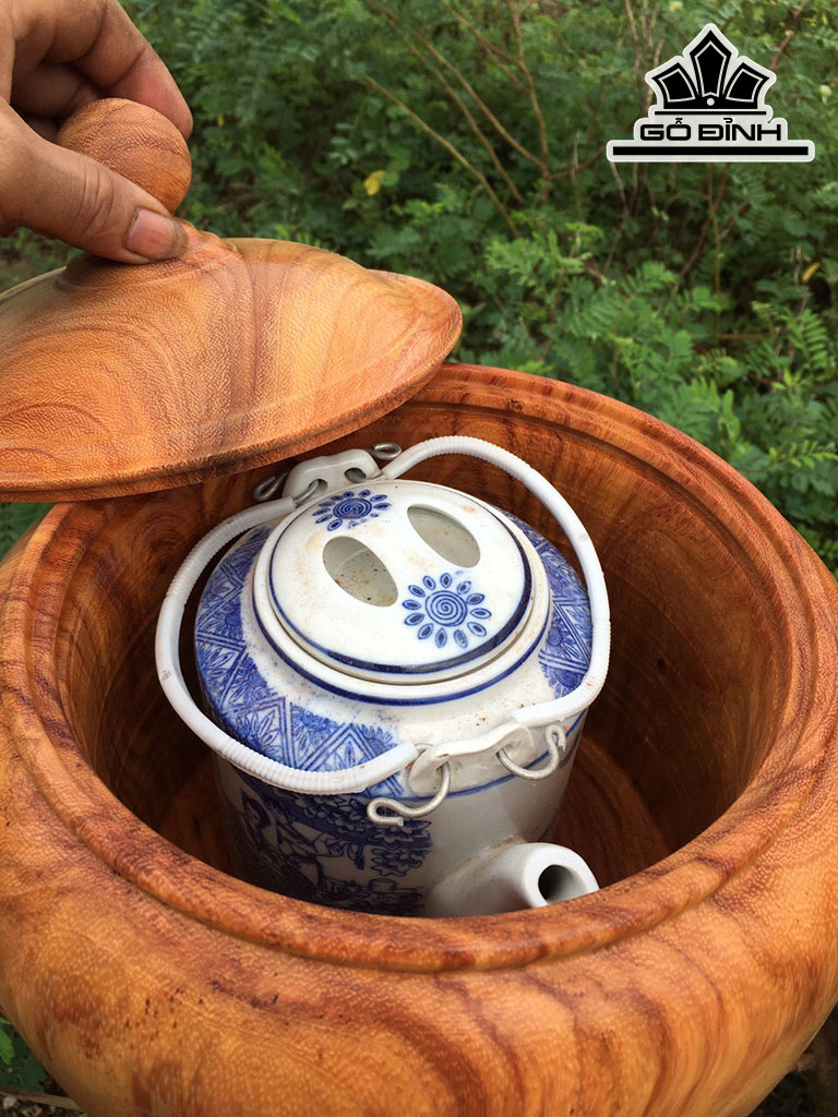 Bình Ủ Trà Gỗ Gõ Đỏ (Cà te) Cao 28 Đường Kính 25 (cm)