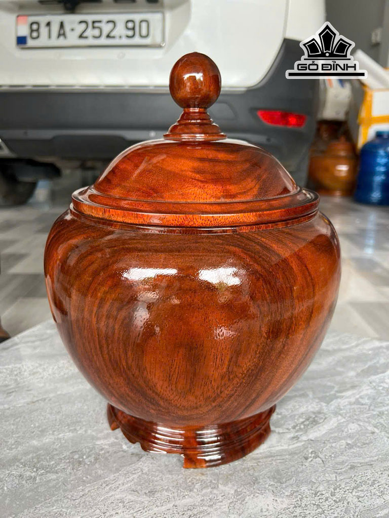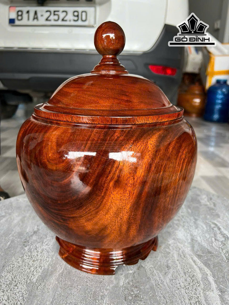 Bình Ủ Trà Gỗ Lim Cao 34 Đường Kính 25 (cm) Đựng 1,2 lít