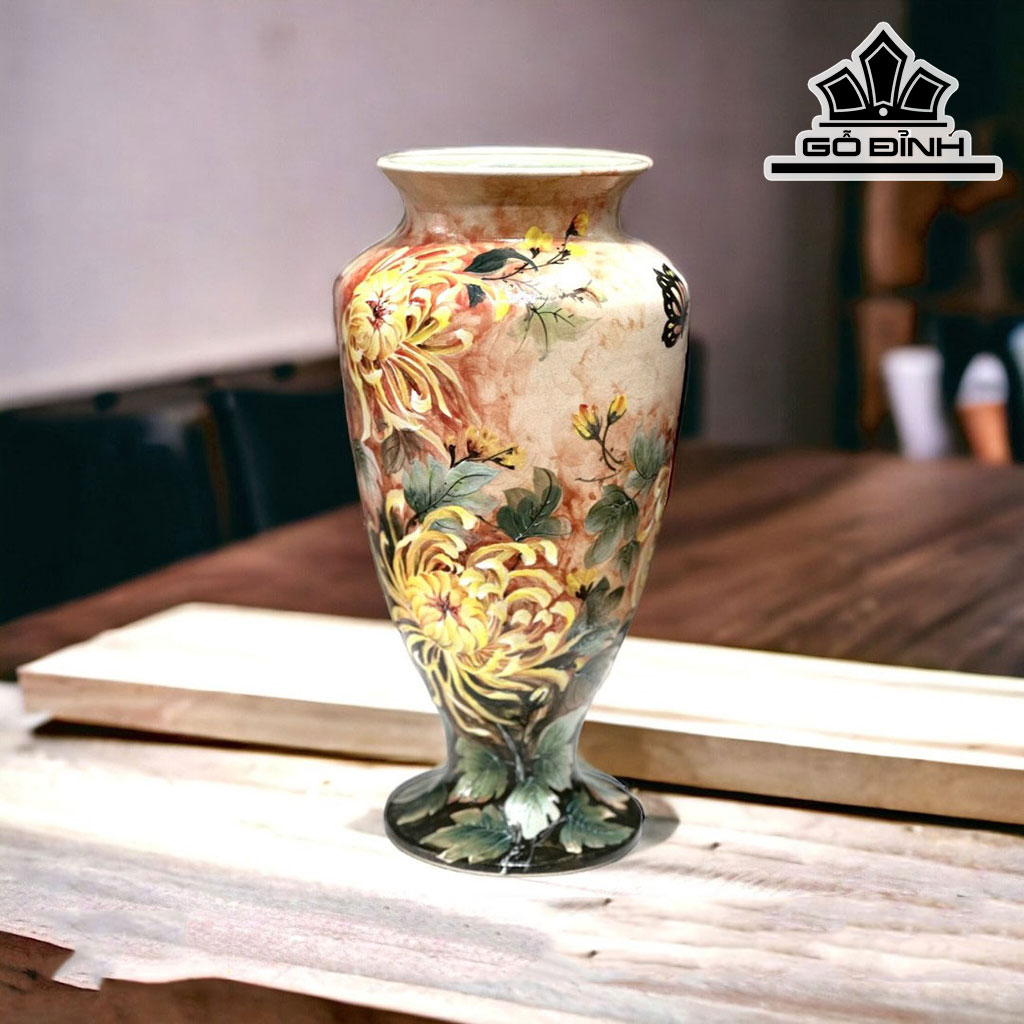 Bình Vẽ Cúc Gốm Bát Tràng Cao 38 Miệng 19 (cm)