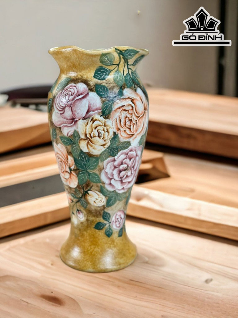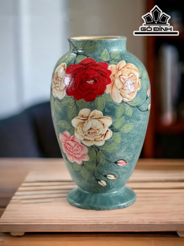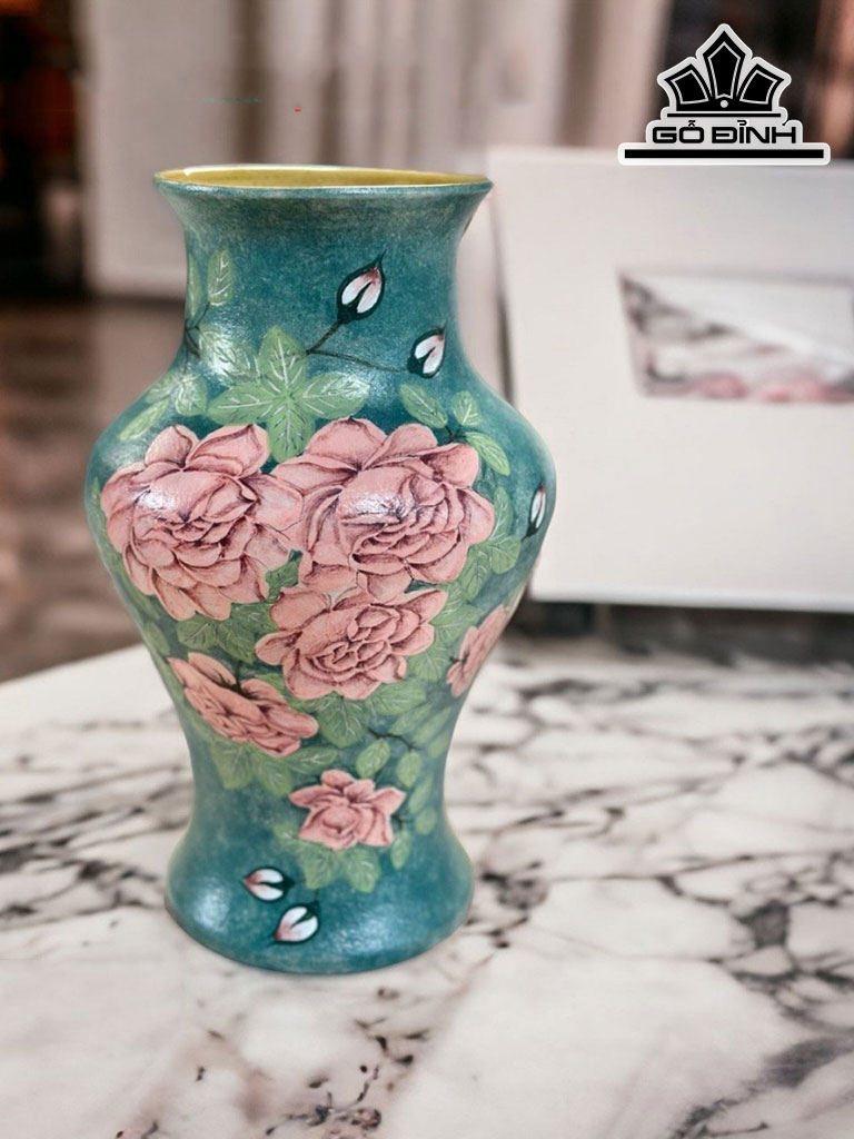 Bình Vẽ Hoa 3D Gốm Bát Tràng Cao 31,5 Miệng 13 (cm)