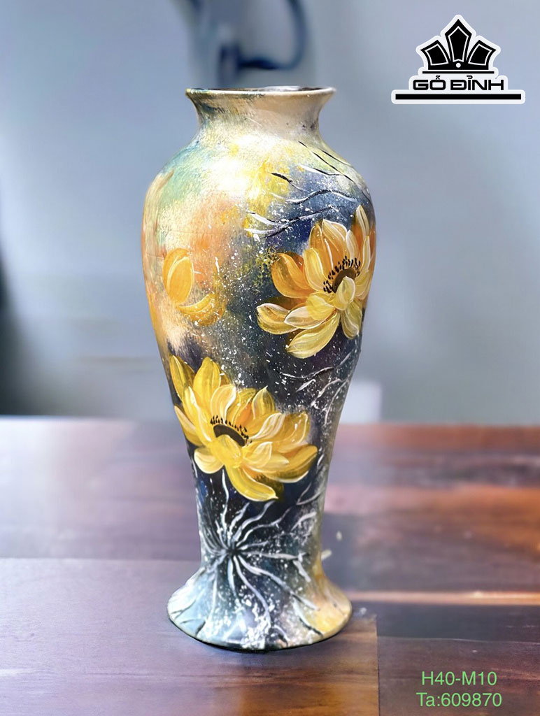 Bình Vẽ Hoa Cúc Gốm Bát Tràng Cao 40 Miệng 10 (cm)