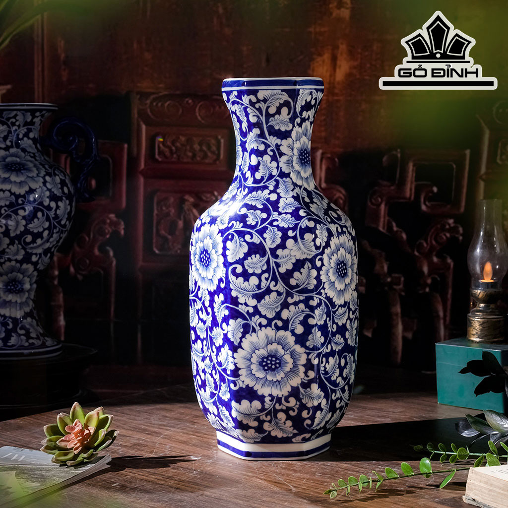 Bình Vẽ Hoa Dây Truyền Thống Gốm Bát Tràng Cao 43 (cm)