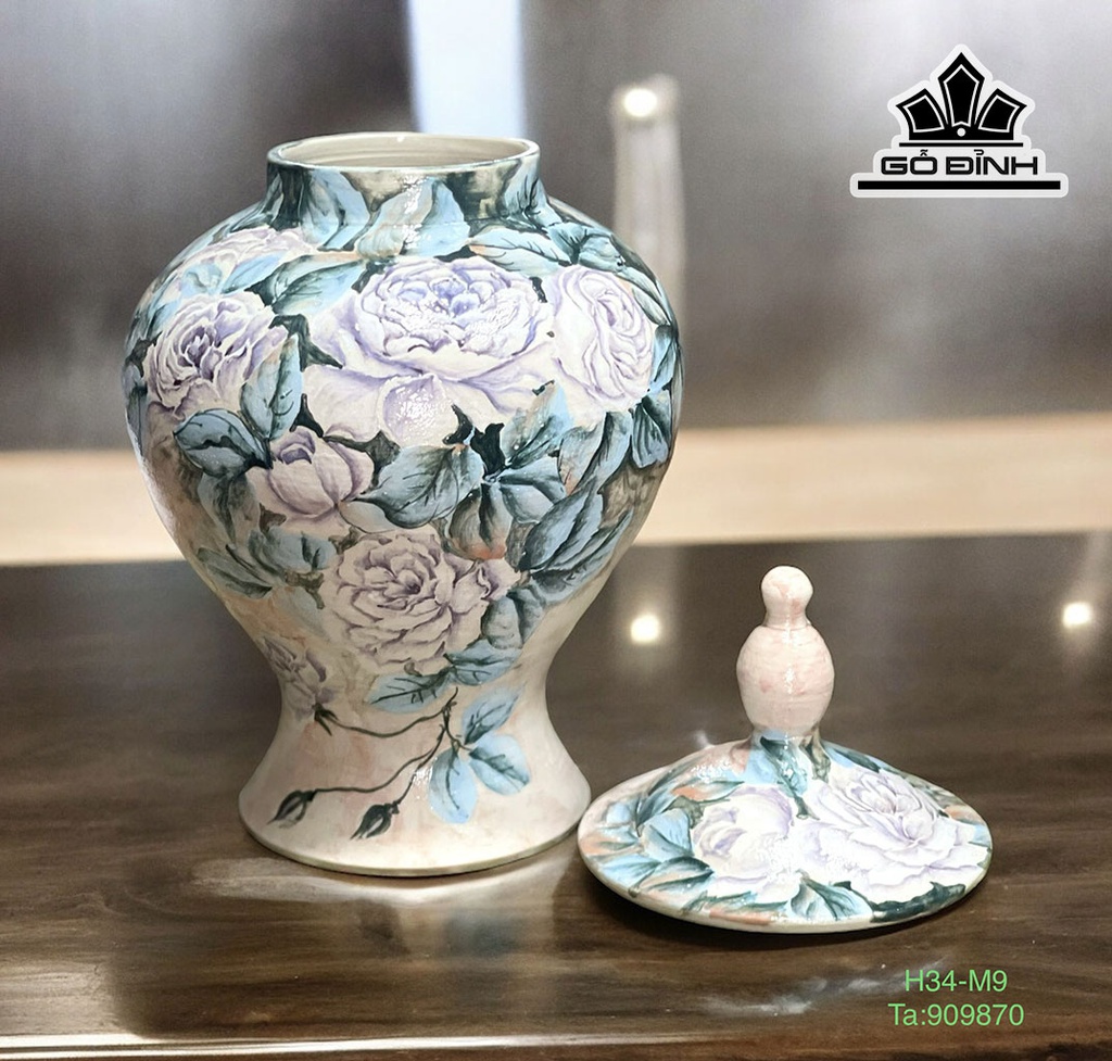 Bình Vẽ Hoa Mẫu Đơn Gốm Bát Tràng Cao 34 Miệng 9 (cm)