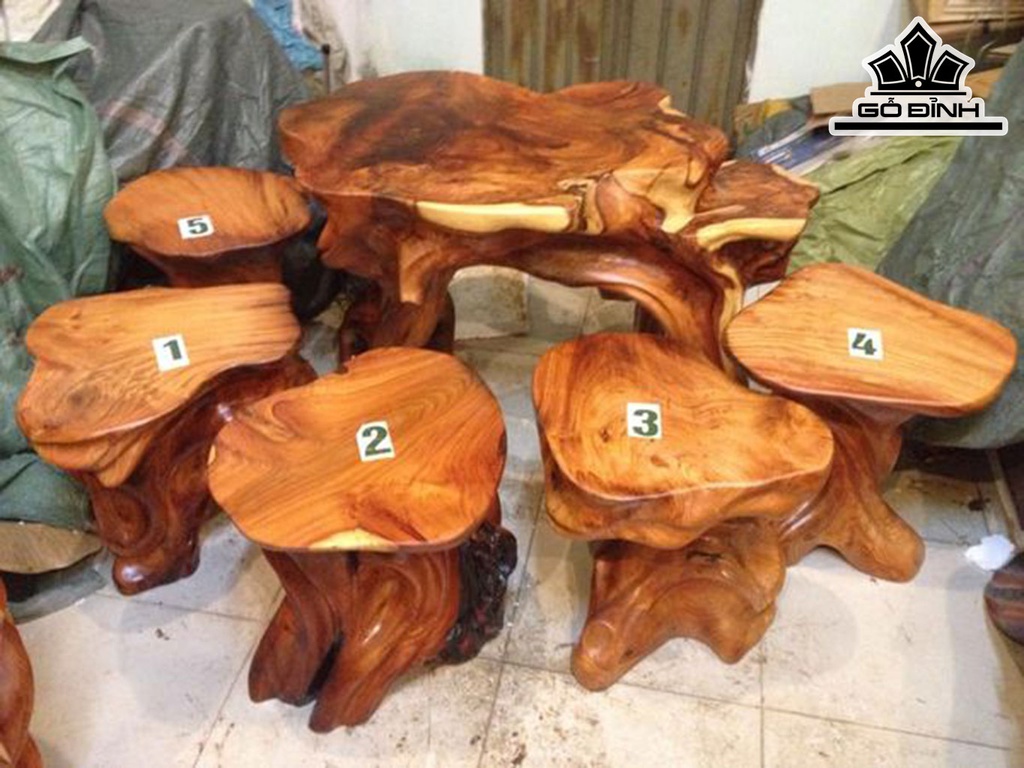 Bộ 1 Bàn 5 Đôn Gỗ Gõ Đỏ (Cà te) Bàn Cao 60 Dài 96 Mặt Trêm 78-52 Mặt Dưới 33-23 (cm) DC72