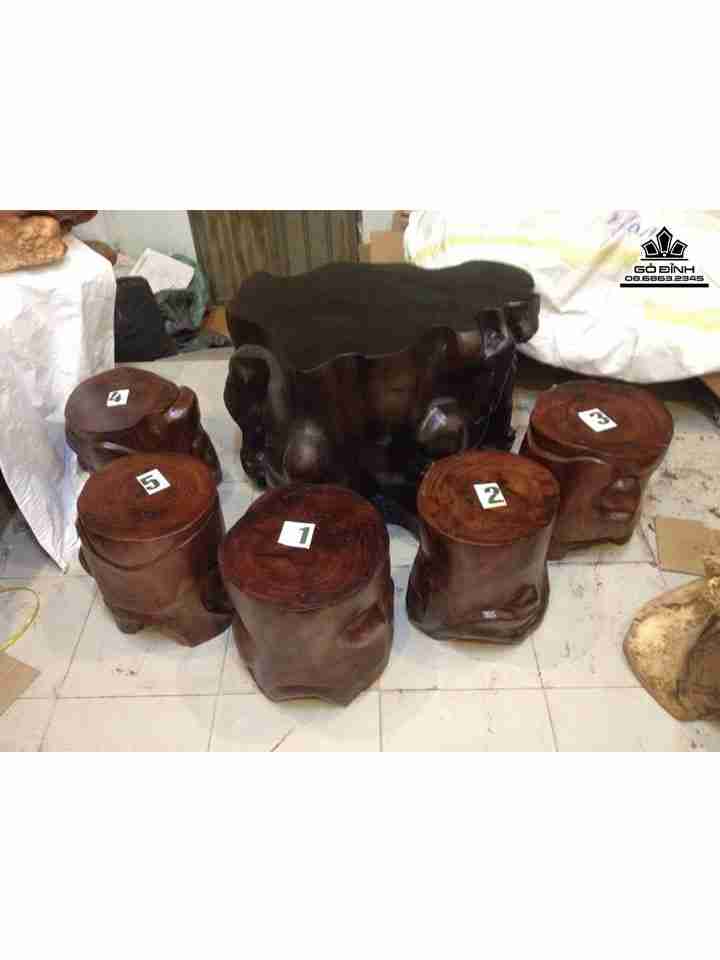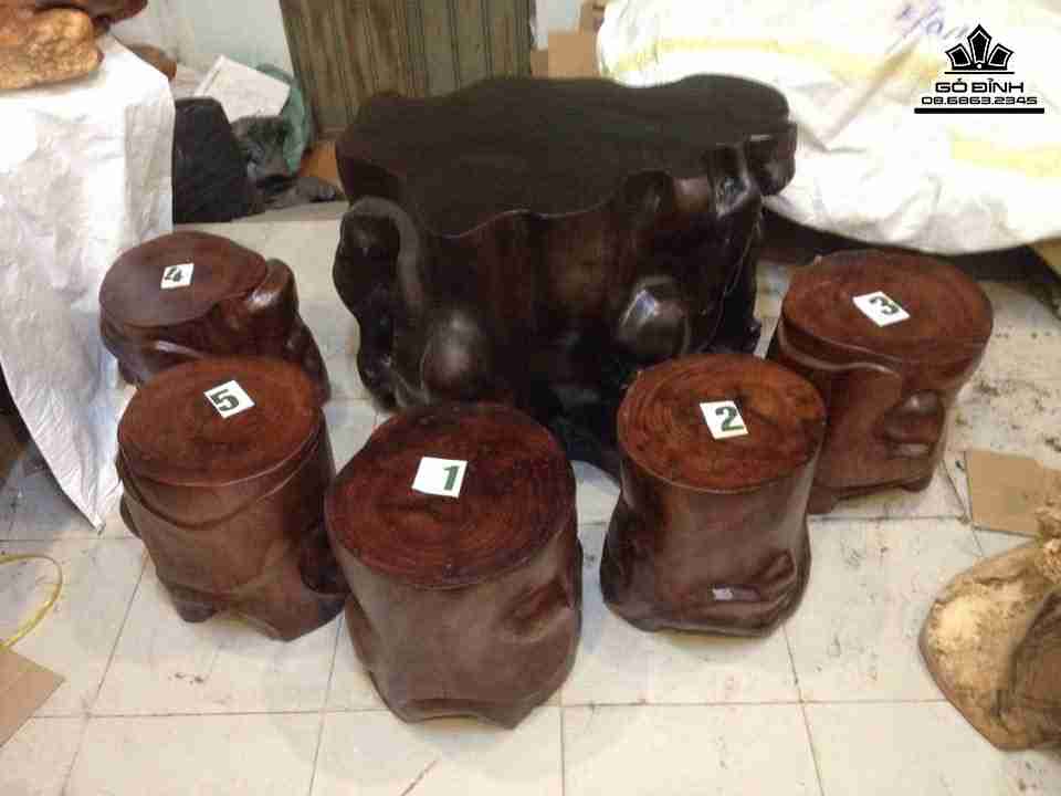 - Bộ 1 Bàn 5 Đôn Gốc Cây Lim Đá Bàn Cao 64 Đôn Cao 41 (cm)